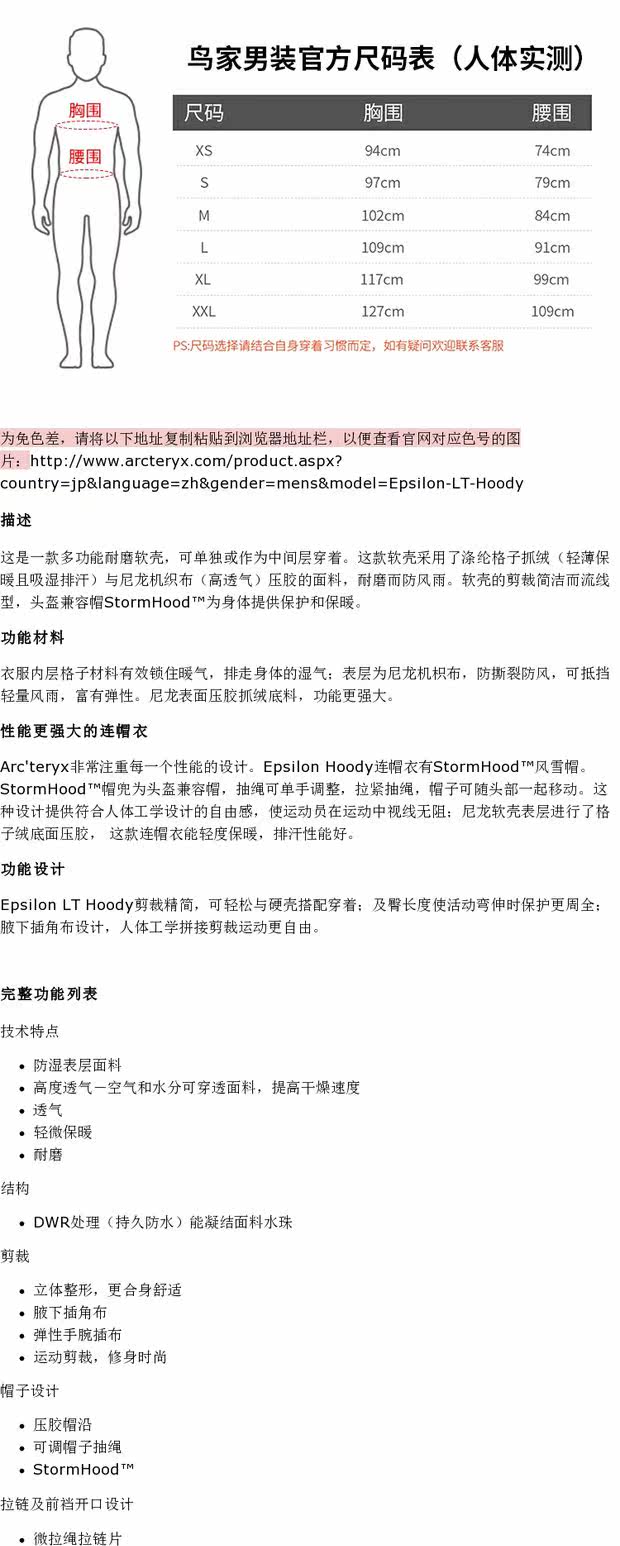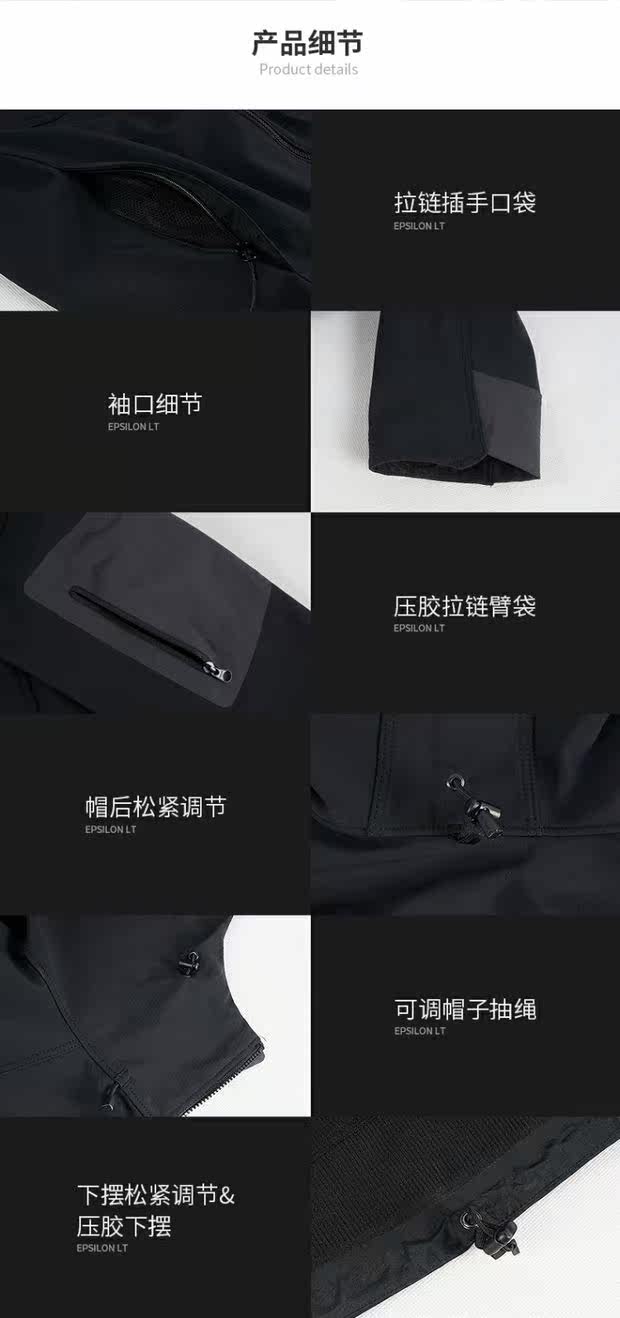 Clear Arcteryx Epsilon Lt Ariter Bird Bird Male Polysmal Windskin Soft Shell Заряд 13644 13645