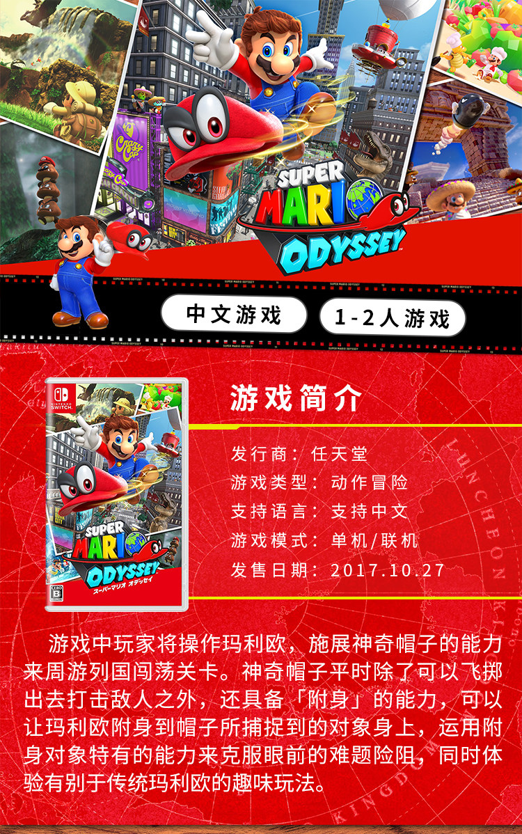 Spot nintendo Switch Game NS Super Mario Odyssey Mario Simple Fan Chines