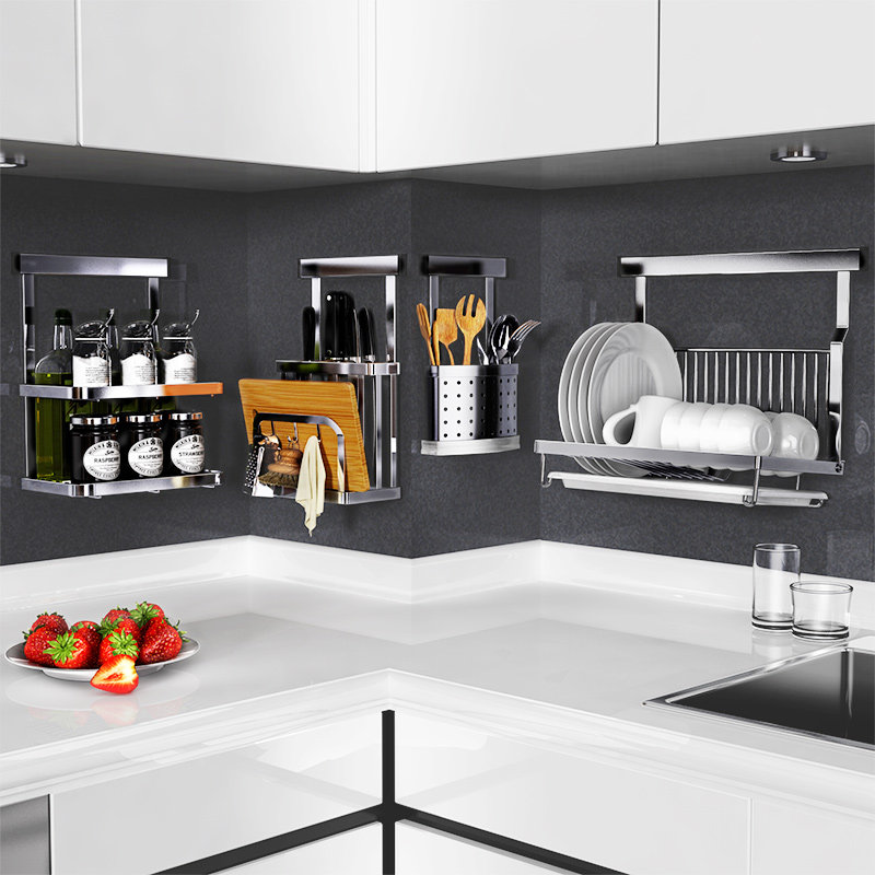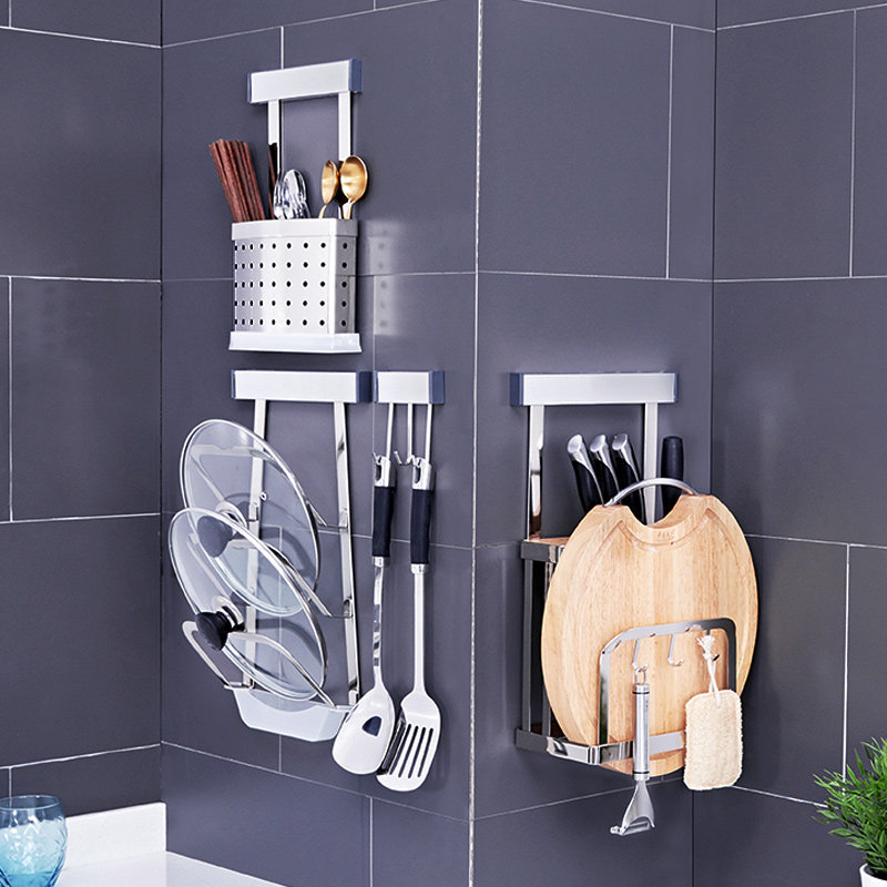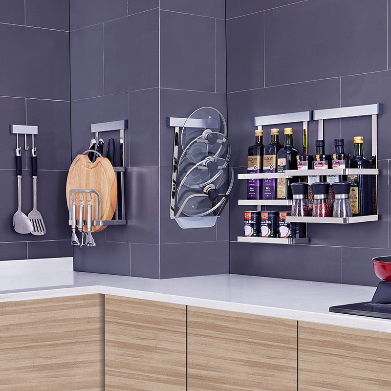 Кухонная стойка, настенная подвеска из нержавеющей стали 304, без дырокола, прочный клей, подвесной стержень, крючок, многофункциональная полка для хранения