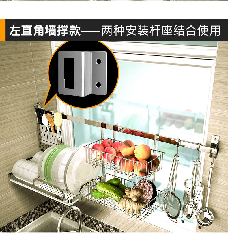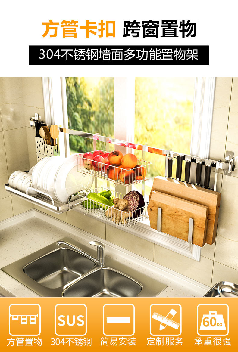 Кухонный окно подвесные стержневые настенные опоры 304 Стоичка из нержавеющей стали через стену для хранения окна подвесная подвеска