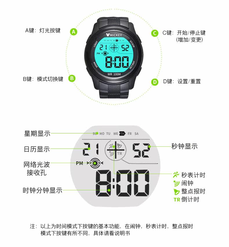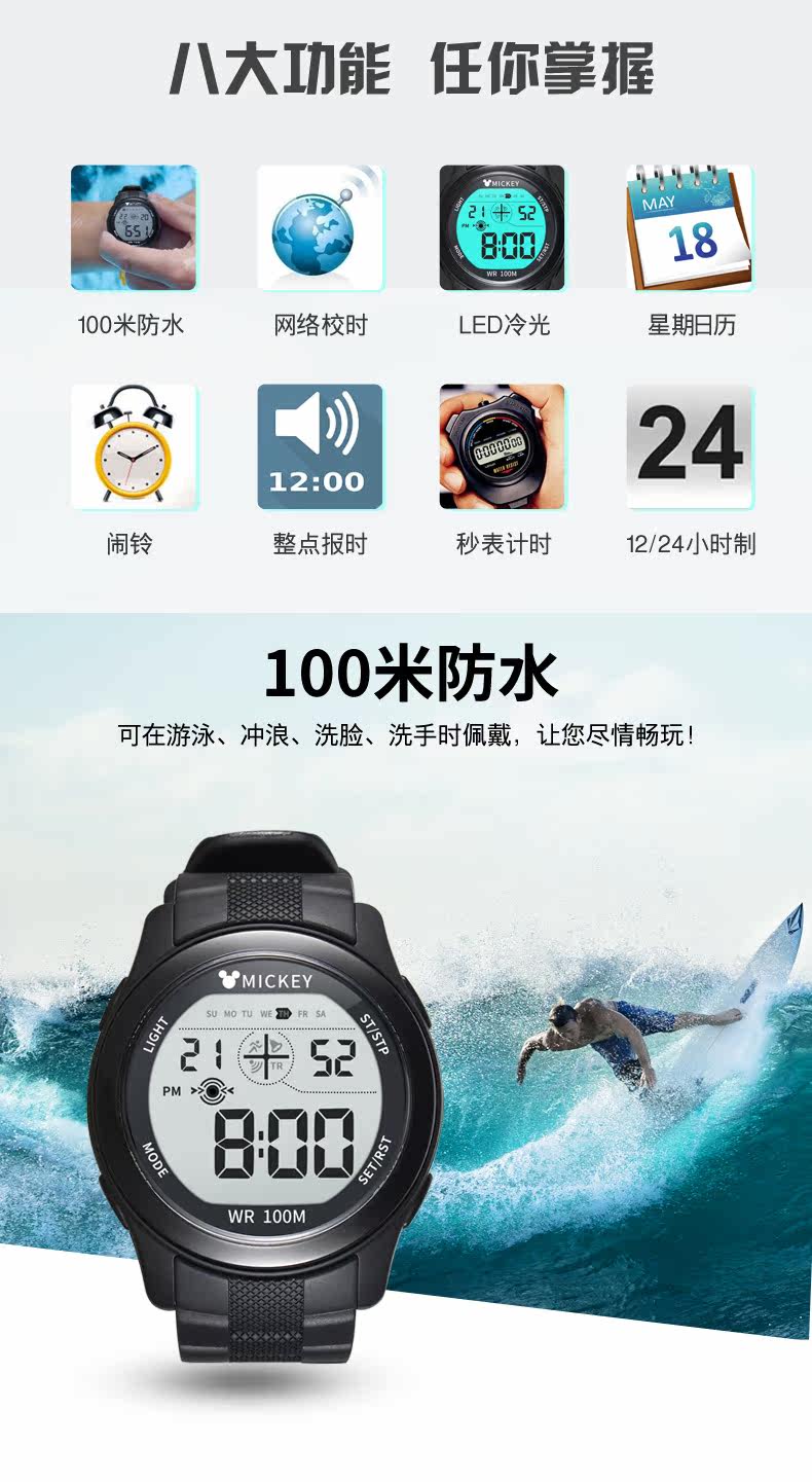 Дисней, детские часы для мальчиков, водонепроницаемые мужские часы, цифровые часы для плавания, 13/14/15 лет, для средней школы, подходит для подростков