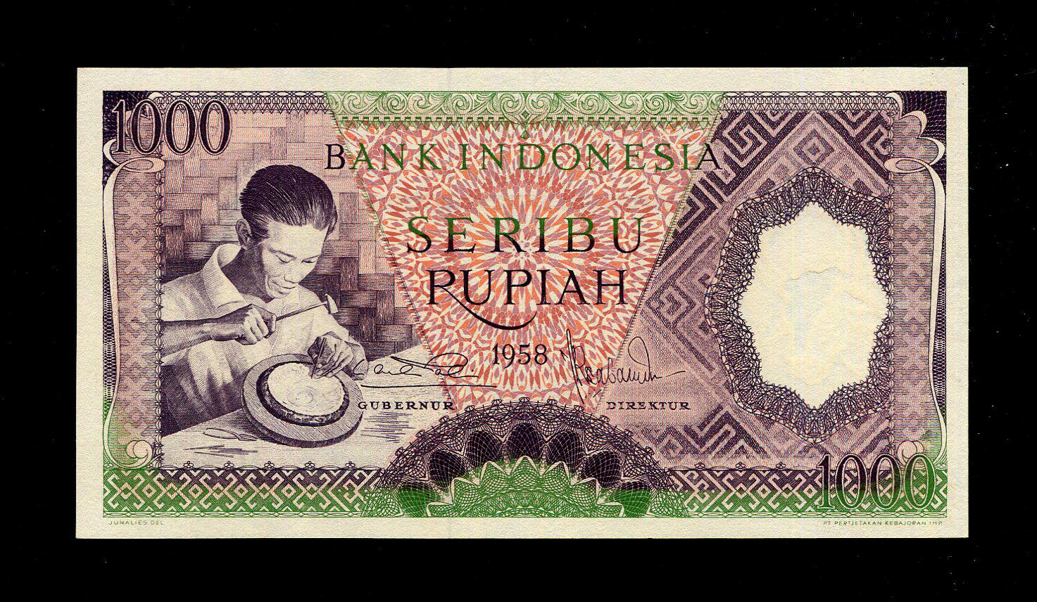 1000 рупий в Индонезии в 1958 году, новый UNC