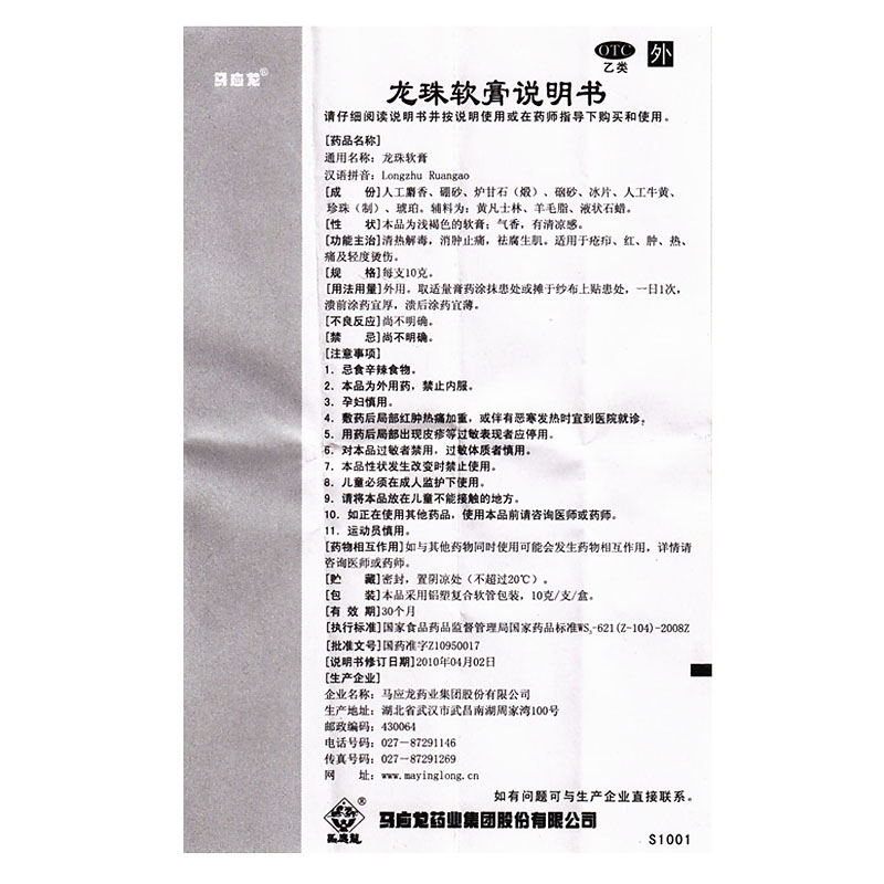 马应龙 Мазь Дракона.