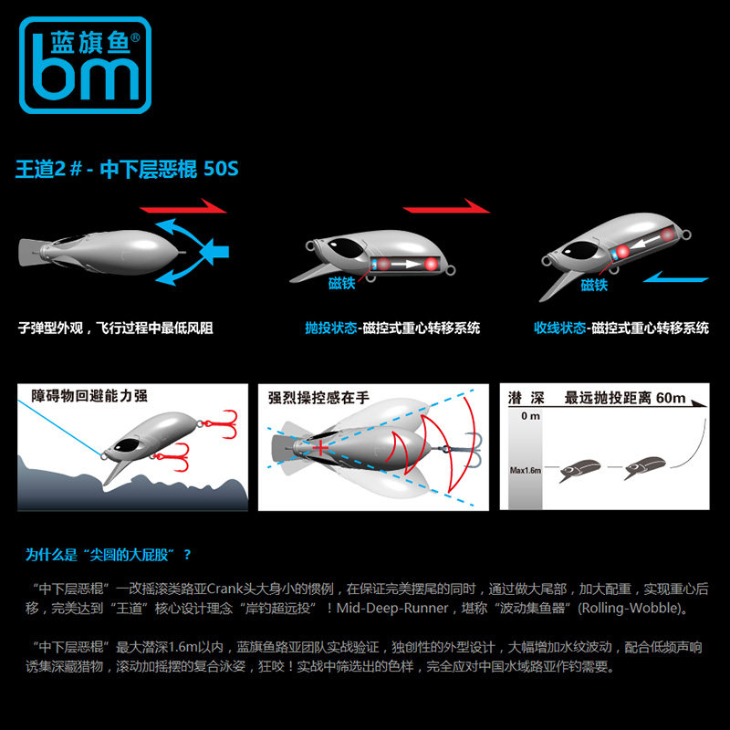 Blue Fish King Road № 2 8,5 г среднего и нижнего злодея медленно Шен -Шен -Рок Луя приманка 铒 Фах