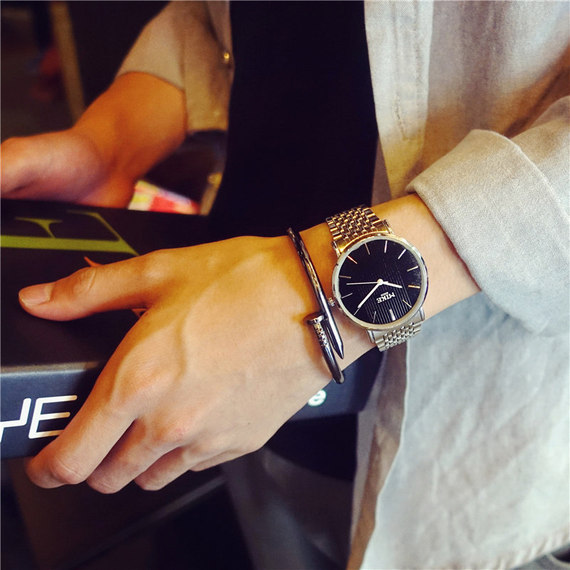 Классические часы стальной ремень, черно -белый фон, не устарется