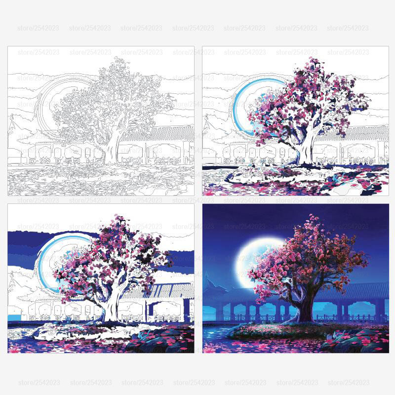 Горячая романтическая луна ночная пейзаж DIY рисовать по номеру