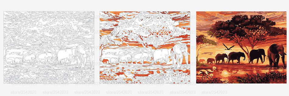 Горячие слоны ландшафт цифровой пайтинг по номерам