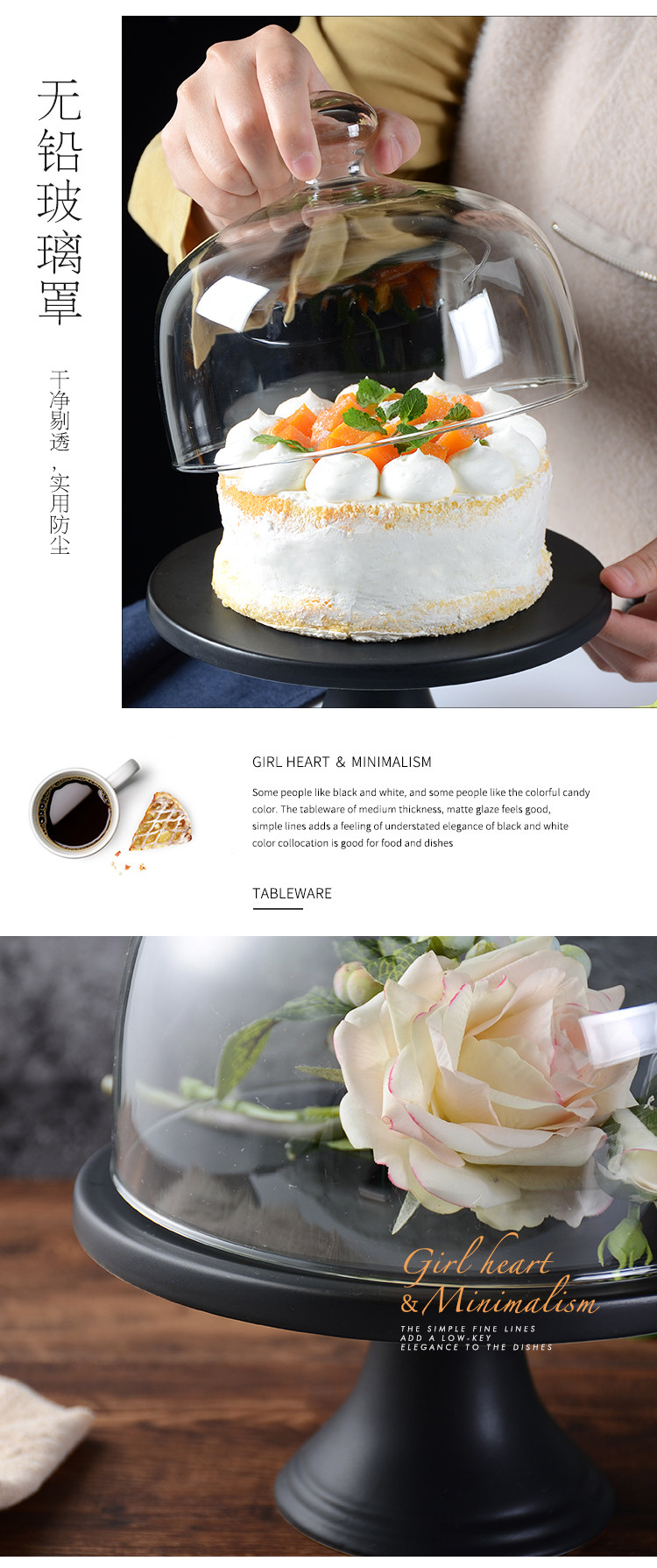 Матовая черная керамическая полка полка американский ретро день рождения свадебный закуска Северная Европа простота и высокий десерт запечен
