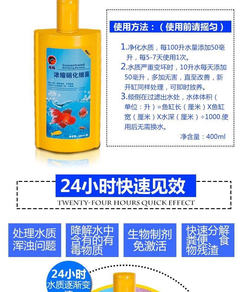 - Концентрированный нитрифицирующий бактериальный фермент 400 мл (разлагаемая рыба для очистки качества воды) бренд дельфинов.