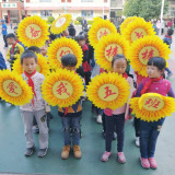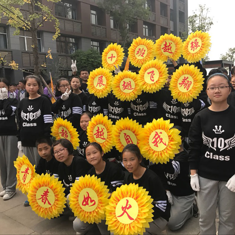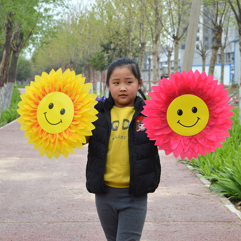 Детские танцевальные цветы Улыбающееся лицо на Sunflower Road с играми начальной школы в детском саду, зарегистрированных на церемонии открытия солнечных цветов