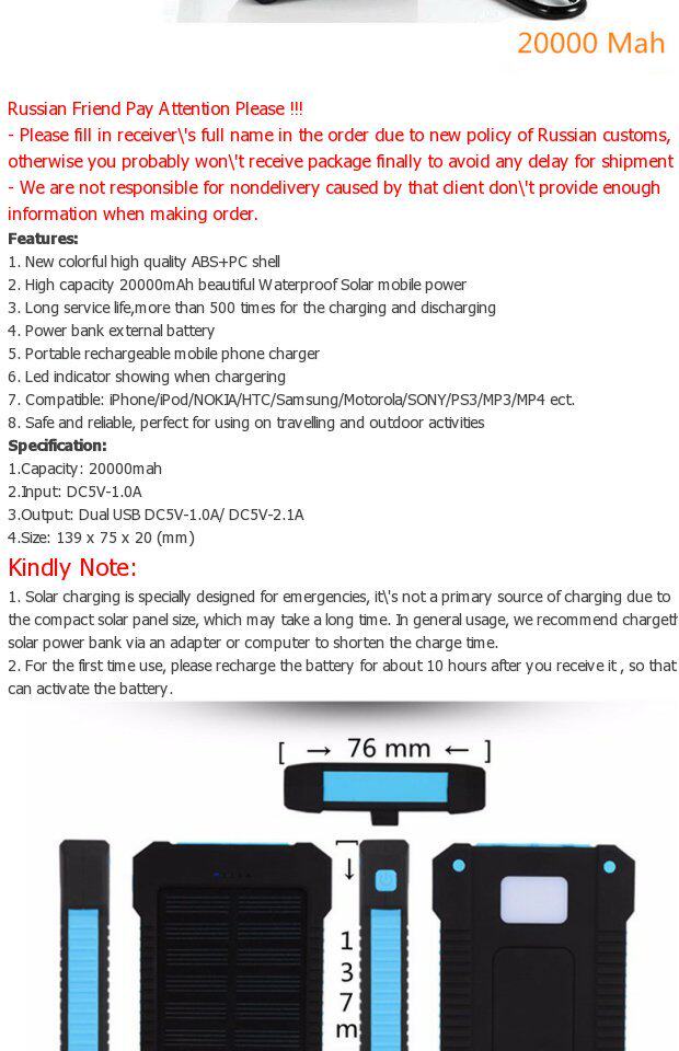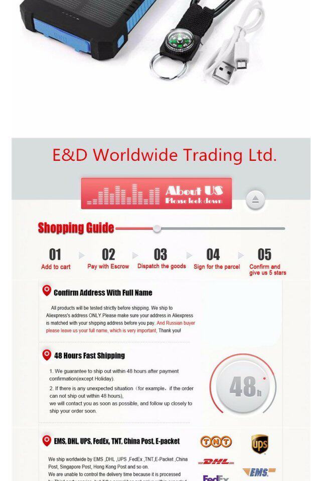 10000 мАч USB водонепроницаемый солнечный банк Shock -Ranse