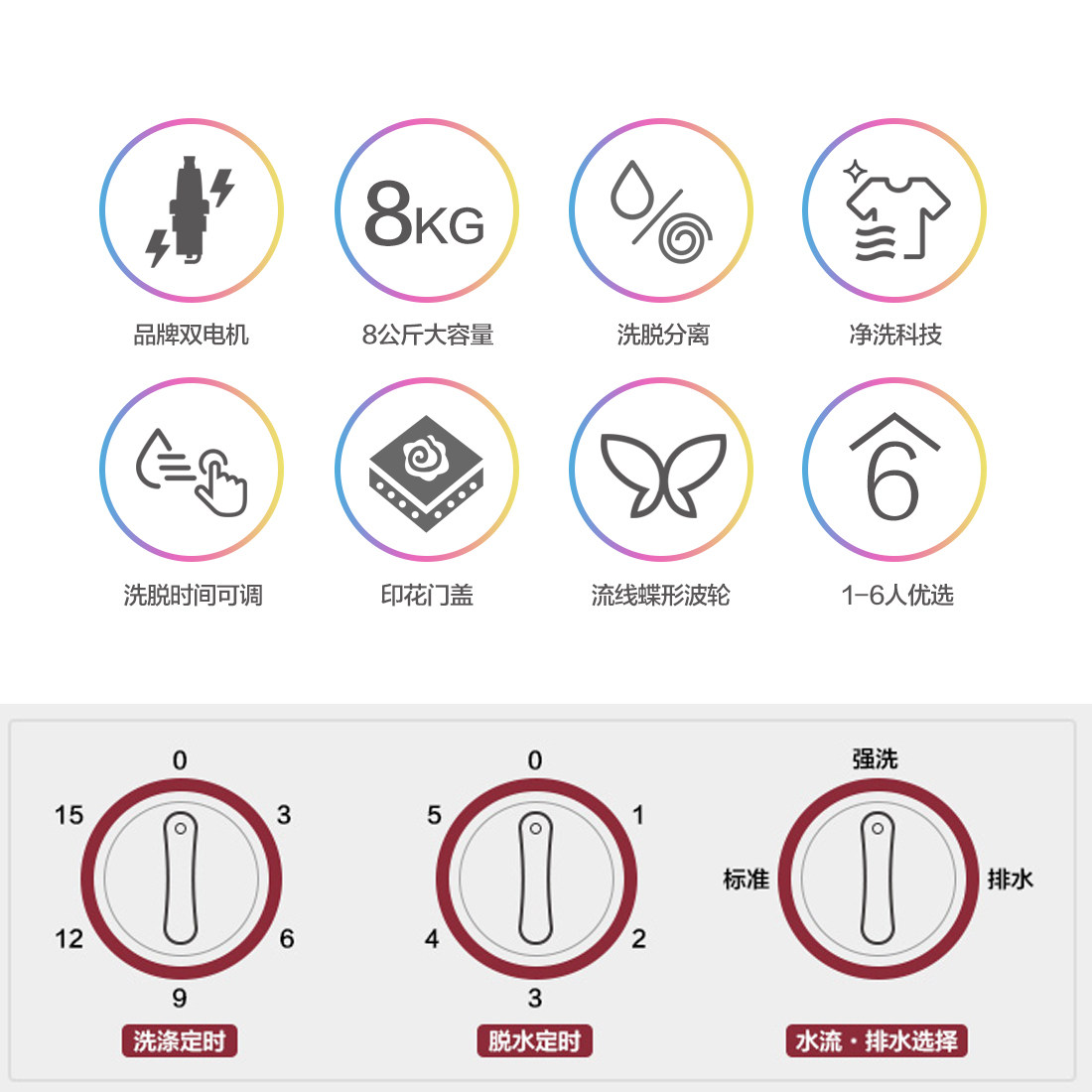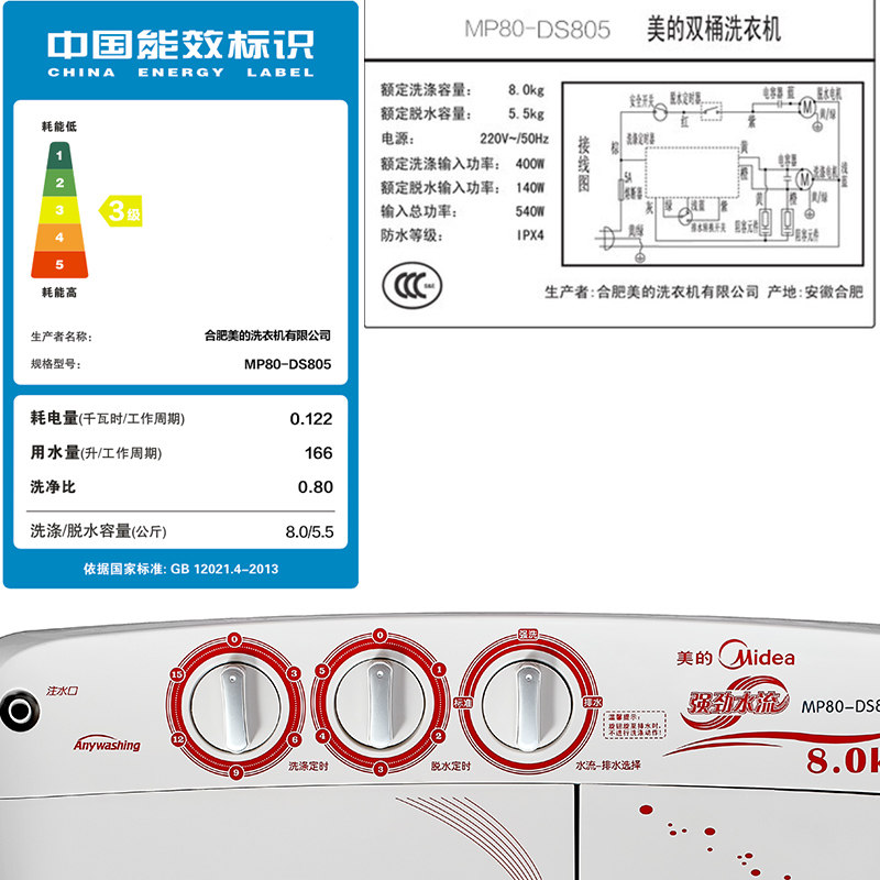 Midea 8 кг двойной ствол большая стиральная машина