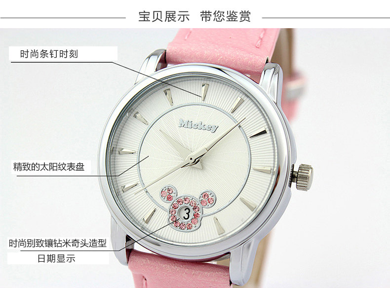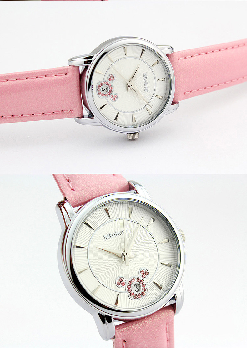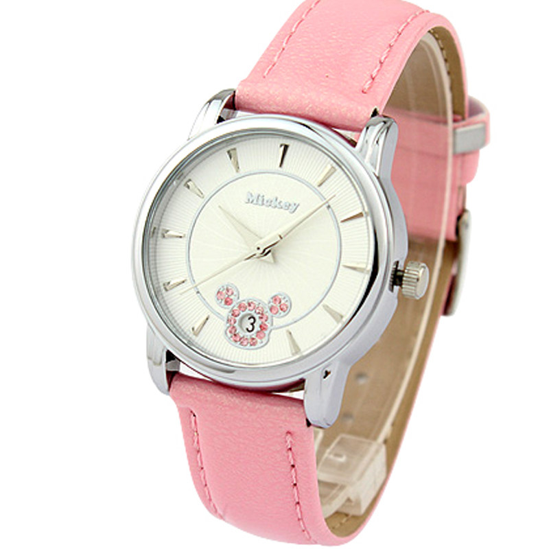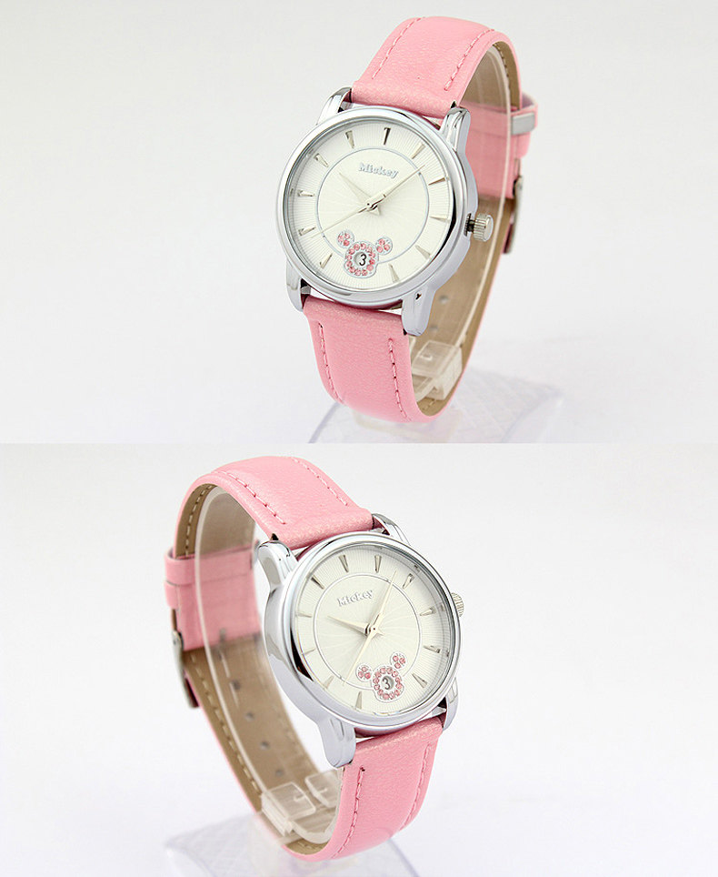 Дисней, розовый водонепроницаемый ремень, детские часы, кварцевые часы
