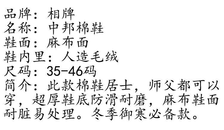 Xiangpai Monk Shouse Hette Thote Thote Winter тепло и утолщенные мужчины и женщины, хлопчатобумажная туфли Чжунбанг, утолщенное, теплое, анти -скользящее сопротивление