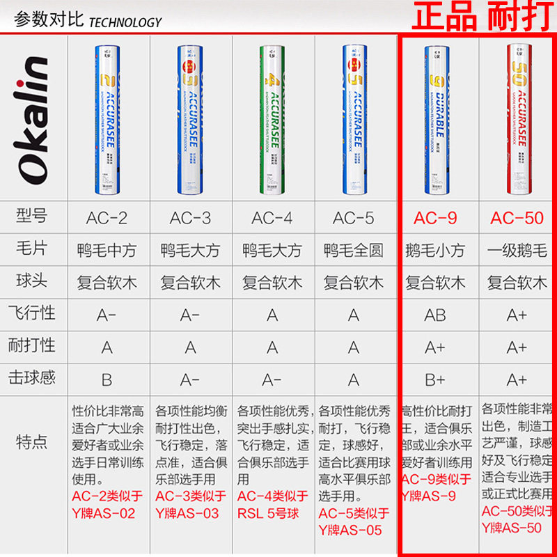 Подлинная бесплатная доставка Okalin Badminton AC9 AC9 AC50 Badminton Weijian Original YY Global Gloss Fine