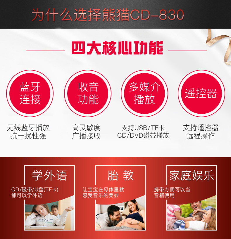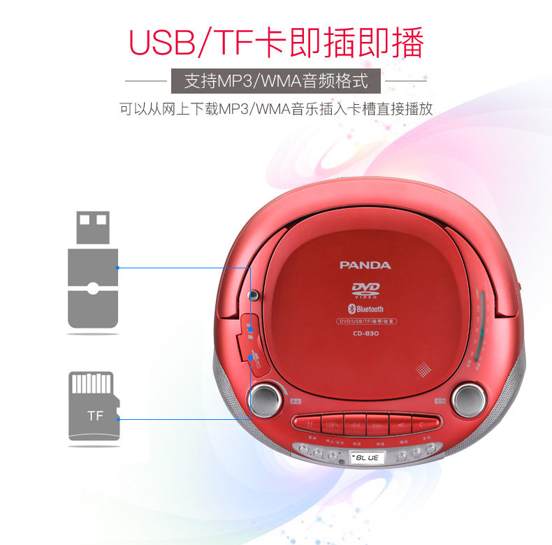 Panda 830CD Player Tape DVD All -In -Matchange Anglish Learning Recorder Home Bluetooth Audio Player