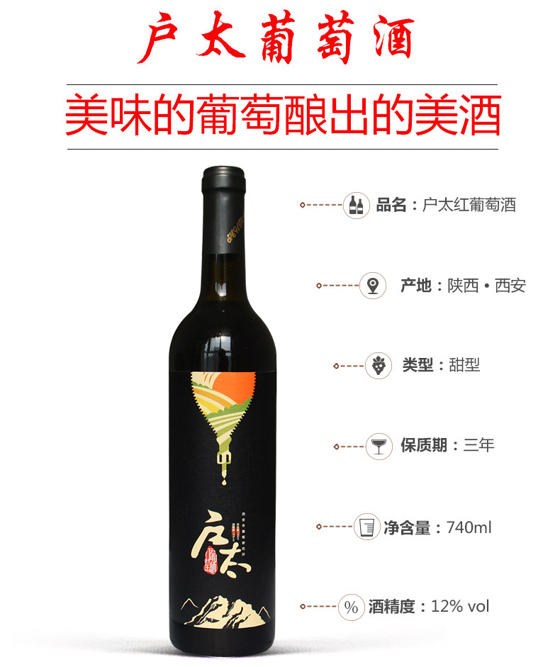 户太 № 8 Сладкое вино, черное бриллиантовое фруктовое красное вино, Shaanxi Specialty Sweet Wine, домашнее красное вино