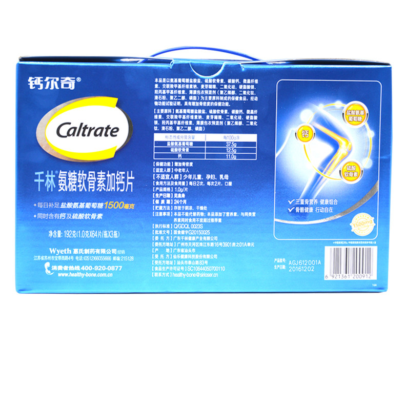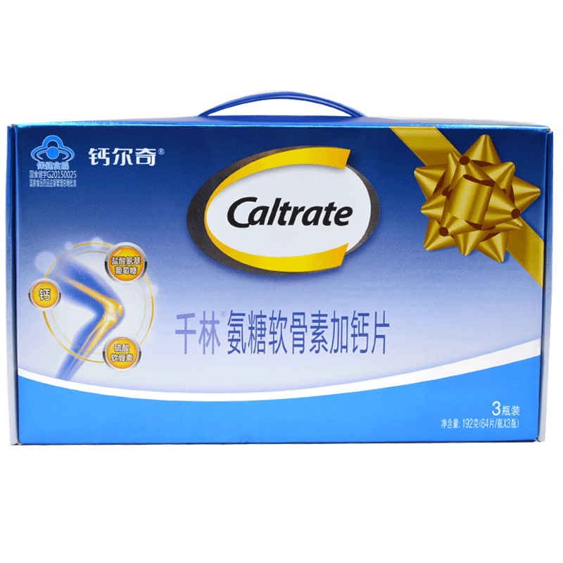 CALTRATE/钙尔奇 Qianlin R Ammonia Sugar Cartilain Plus Calcium Tablet 1,0 г/таблетка*64 таблетки/бутылка*3 бутылки