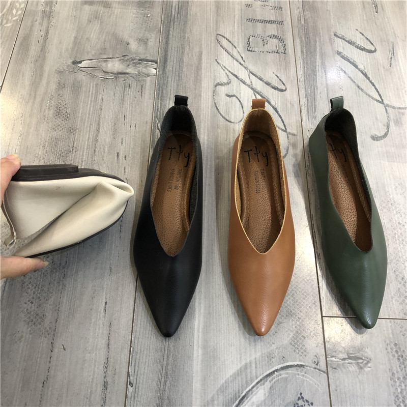 2022 новые осенние стильные простые и универсальные туфли на плоской подошве с острым носком для женщин, мягкая кожаная обувь для бабушек на мягкой подошве, обувь для беременных