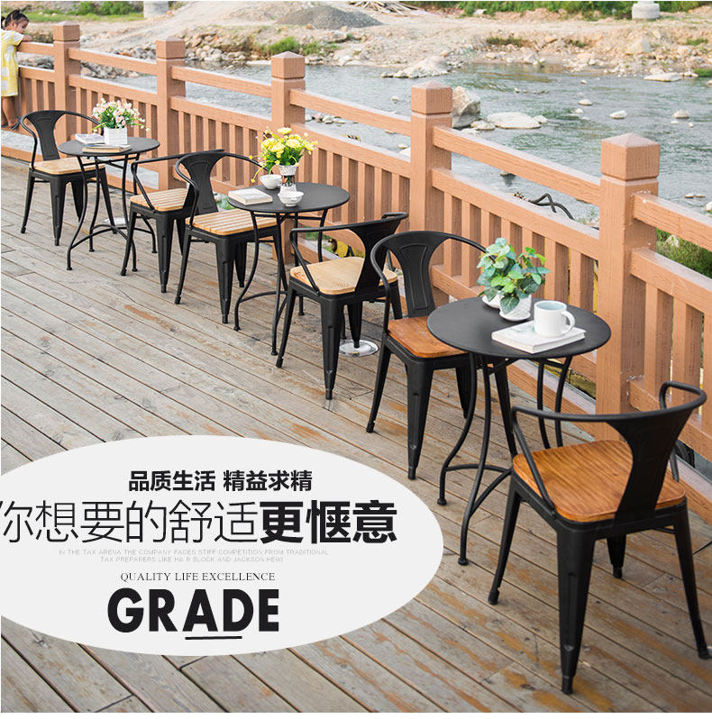 Liangtai Стол и стул Трех -части на открытом воздухе двор на балконе на задний стул кофейный молочный магазин чай Магазин Случай Железный Круглый Стол