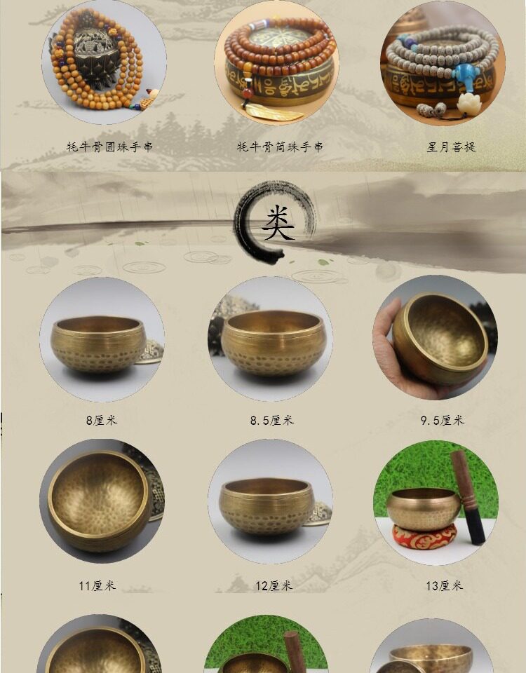 11см, Тибет, Меннон Непал Ручная медная модели ручной работы, сутра буддийской звуковой чаши медная йога спа -салон Аудиотерапия Базилик