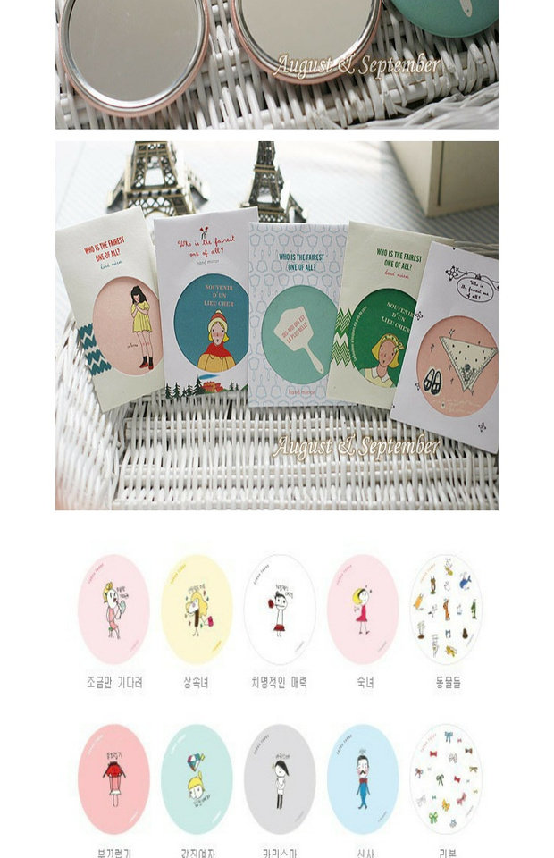 Милое мультяшное портативное переносное круглое зеркало, Южная Корея