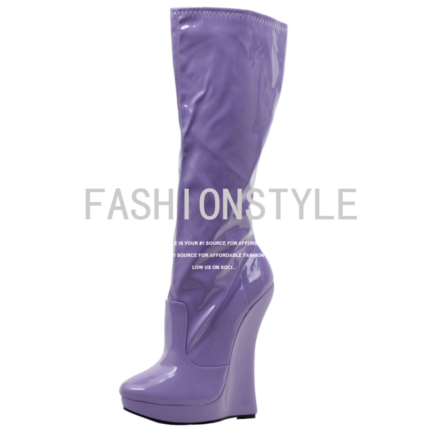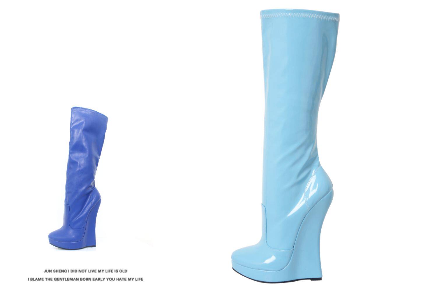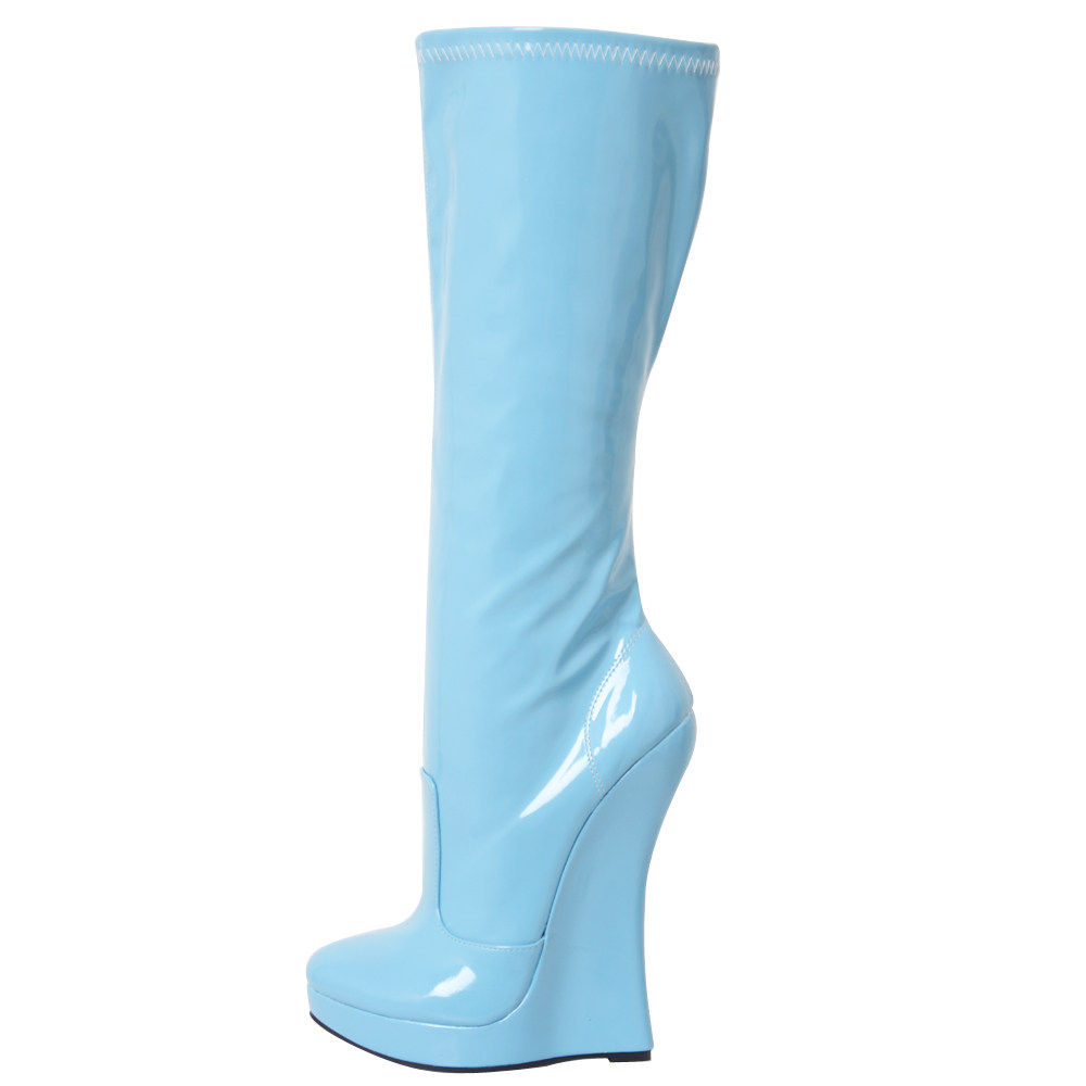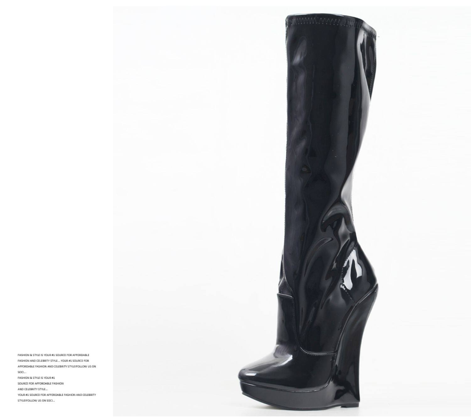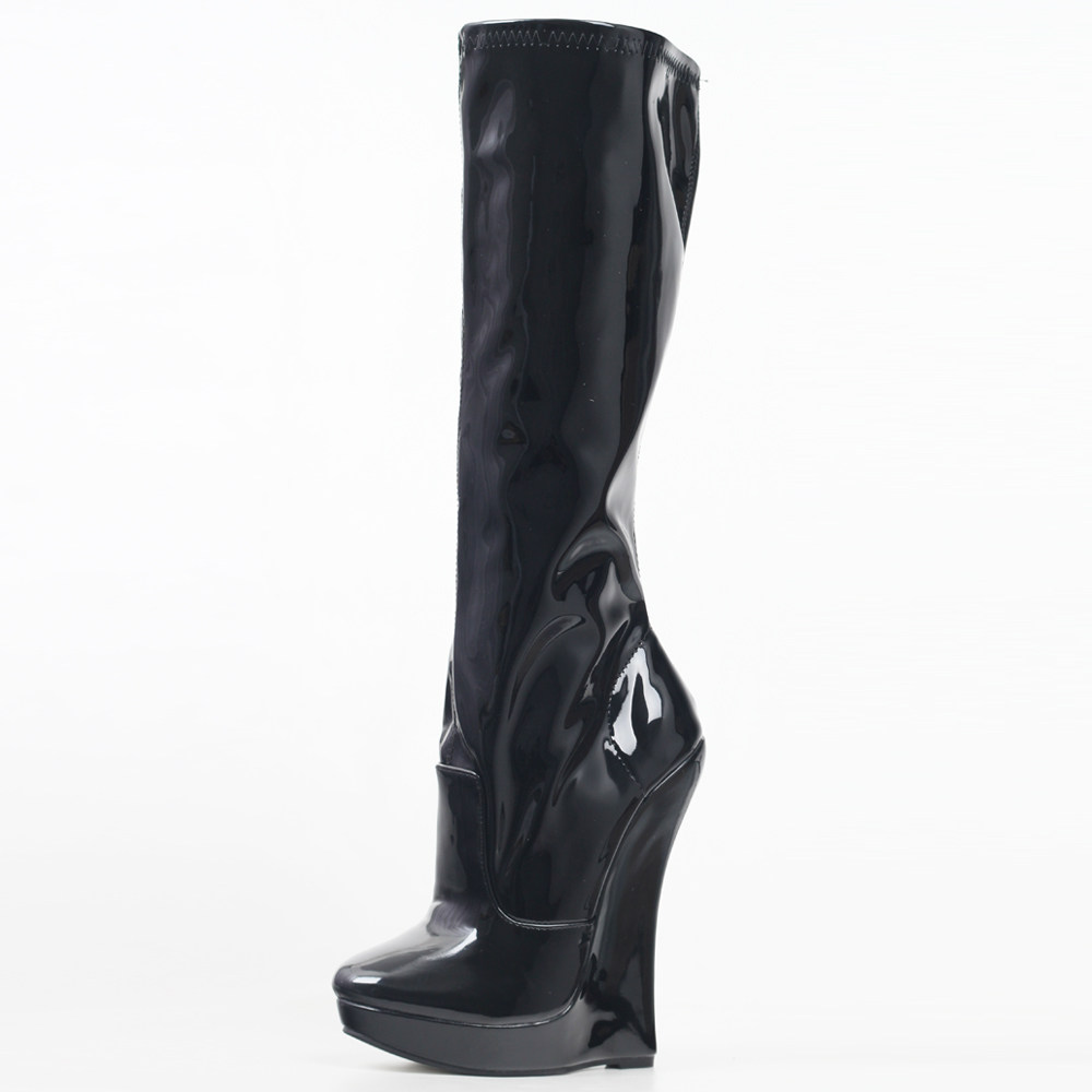 Европейские и американские сексуальные эластичные высокие сапоги на очень высоком каблуке 18 см с подковообразной танкеткой из лакированной кожи, костюмные сценические сапоги большого размера