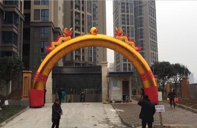 Золотая арка 8 метров 10 метров 12 метров Арк Дверь Золотая Шуанлонг Рекламный Открытие Празднование Действия на открытом воздухе Гибкая модель