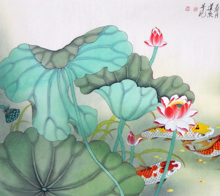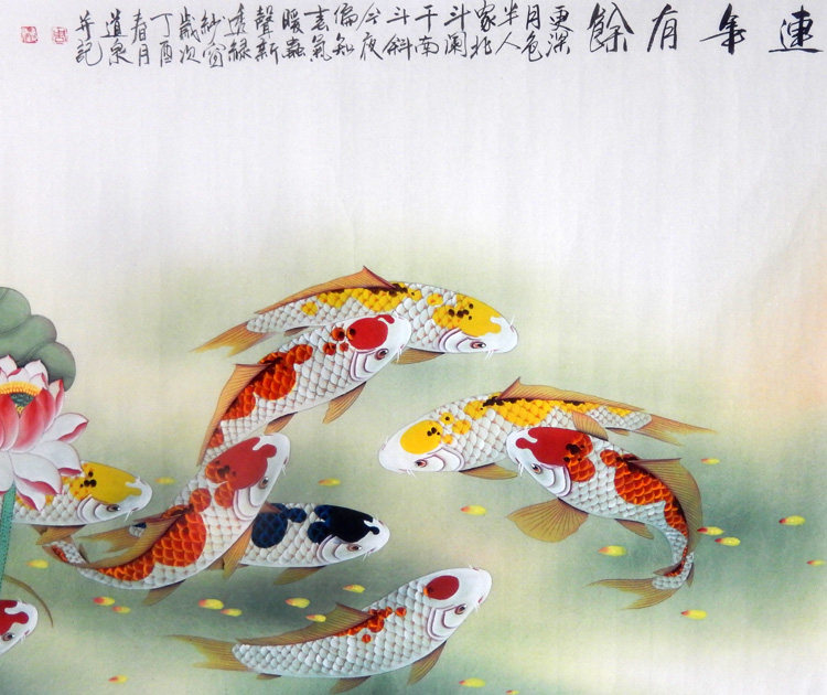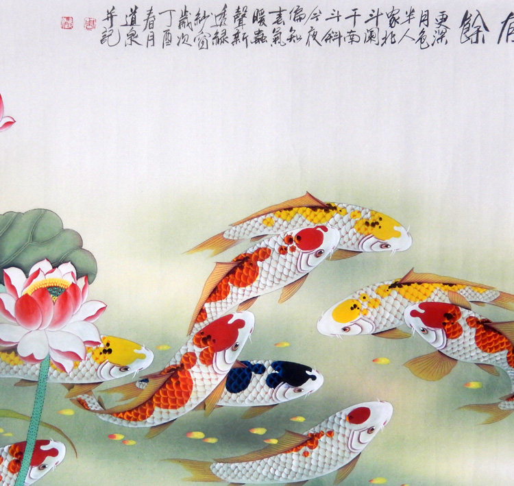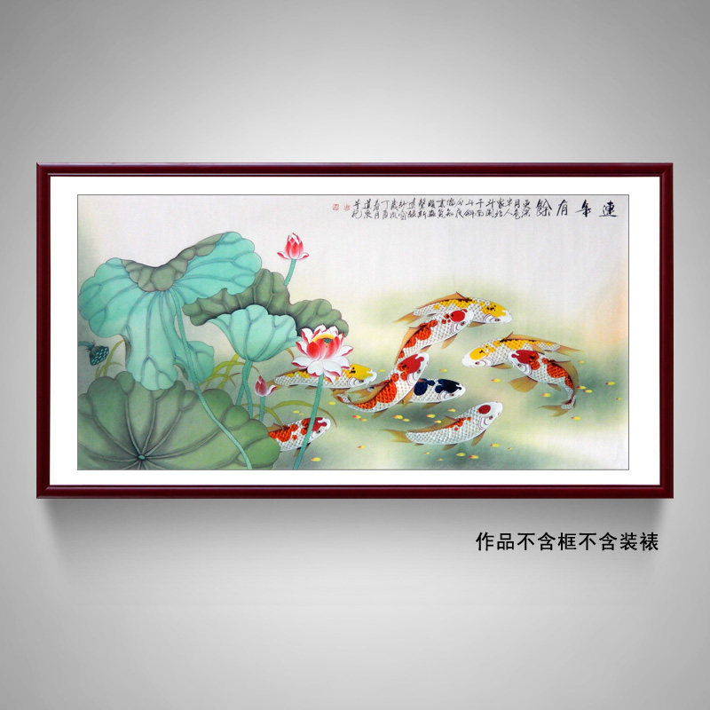 Знаменитые художники вручную настоящие следы из четырех ручек гонгвена, карпа девять рыб, цветов, птиц и живописи фэн -шуй, есть место для украшения гостиной