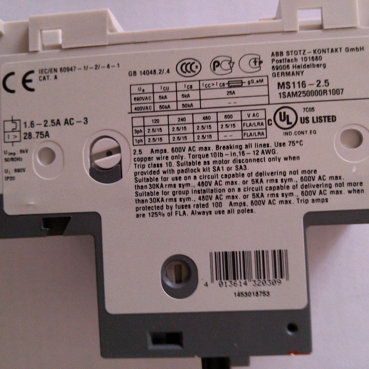ABB Электрический стартер MS116-0.16 Электрический защитник 0.1a-0.16a