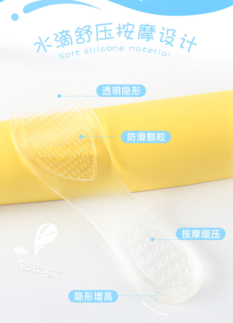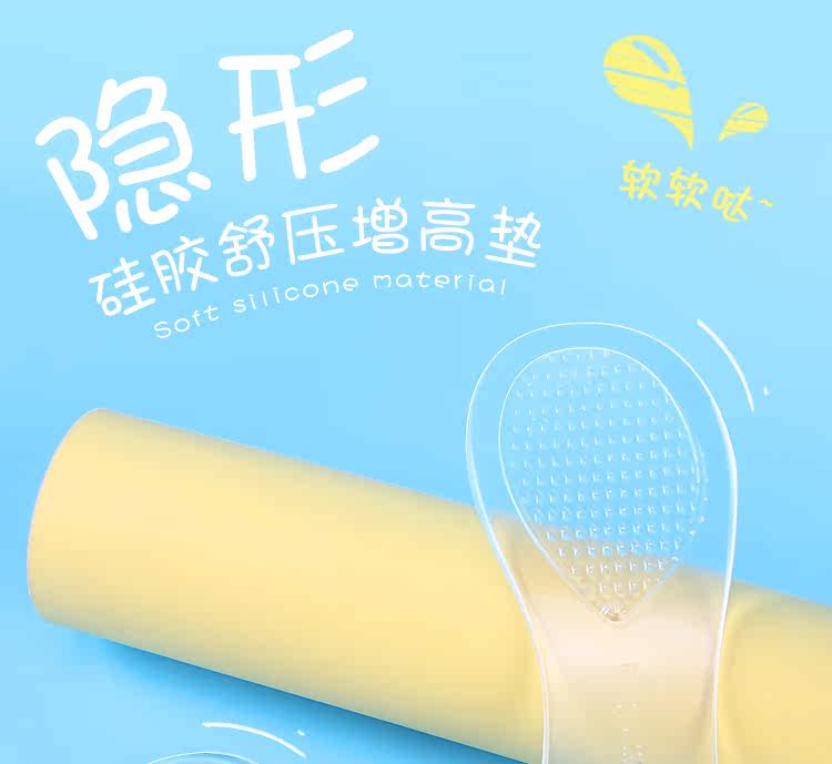 Силиконовые летние стельки для увеличения роста, нескользящие невидимые босоножки