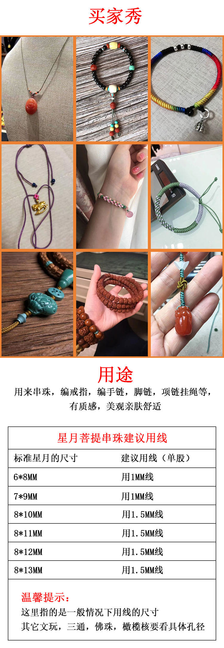 褆绵 Плетеный износостойкий браслет из бисера из грецкого ореха, ожерелье, подвеска, ремешок, DIY, 1mm