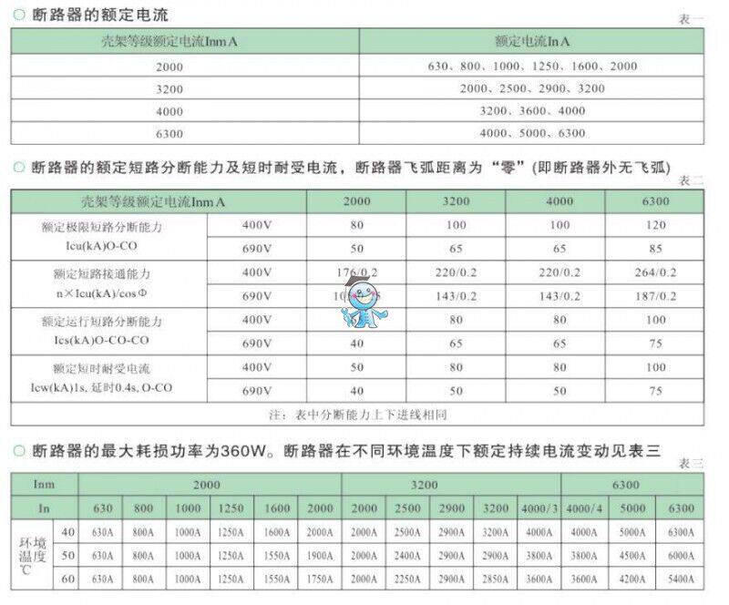 Интеллектуальный и универсальный автоматический выключатель (называемый автоматическим выключателем), подходящий для AC 50 Гц, номинальное напряжение до 660 В (690 В) и ниже, а номинальный ток от 630 А до 6300А используется для распределения линий питания и защиты и свободного мощного оборудования. Заряд. Вред таких разломов, как перегрузка, под напряжением, короткое замыкание и однофазное заземление.Выключатель схемы имеет интеллектуальную защиту, точную селективную защиту, может повысить надежность питания и избежать ненужных отключений электроэнергии.В то же время с открытым интерфейсом связи, его можно выполнить“Четыре далеко”, Чтобы удовлетворить требования Центра управления и системы автоматизации.Выключатель цепи составляет 8000 В на высоте 2000 метров (различная высота корректируется на стандарте на разных высотах, а максимум не превышает 12000 В).Этот выключатель используется в качестве изолятора без интеллектуального контроллера и датчика.