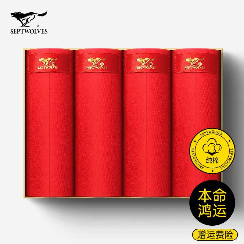 Tmall, septwolves, оберег на день рождения, хлопковое нижнее белье, красные штаны, шорты, колготки, носки, комплект, большой размер