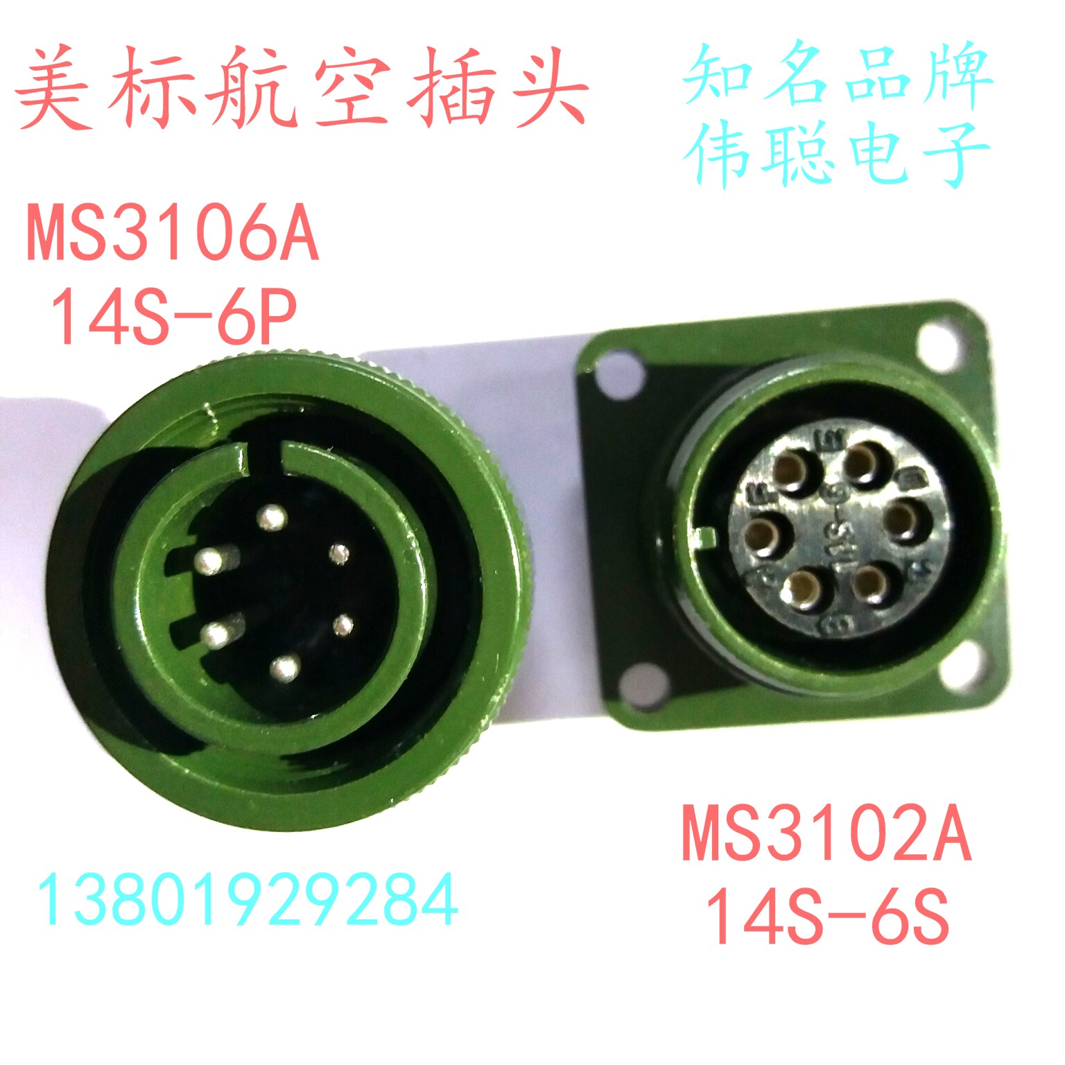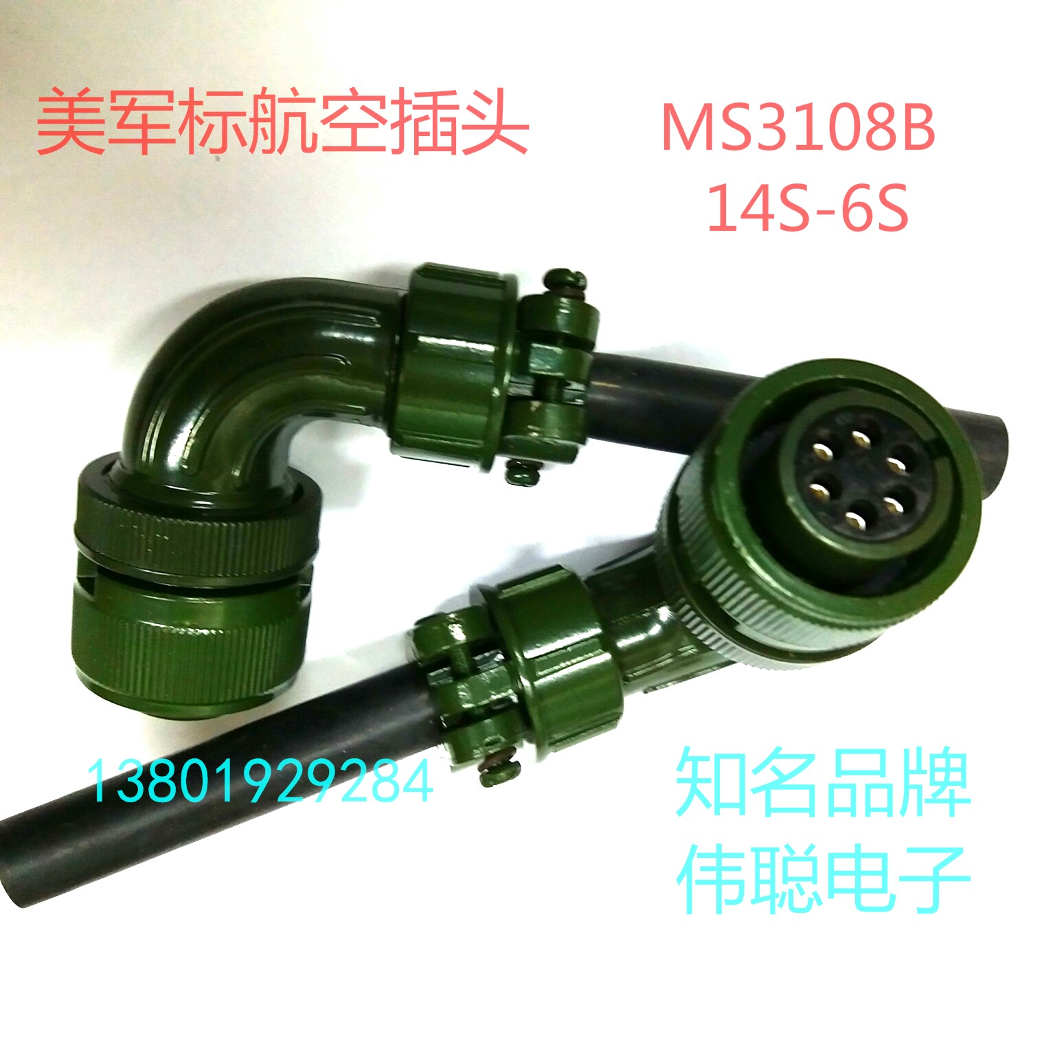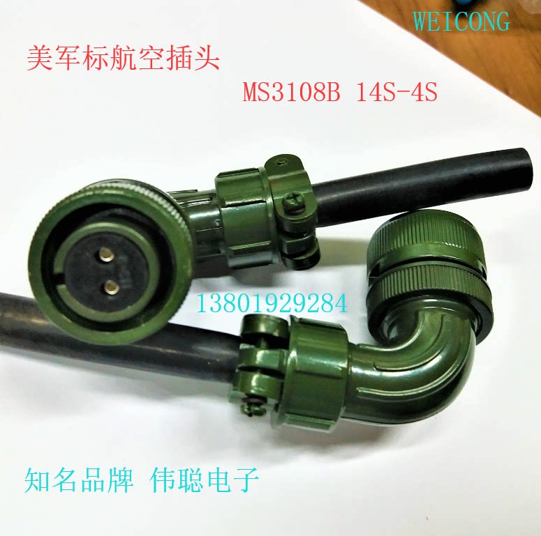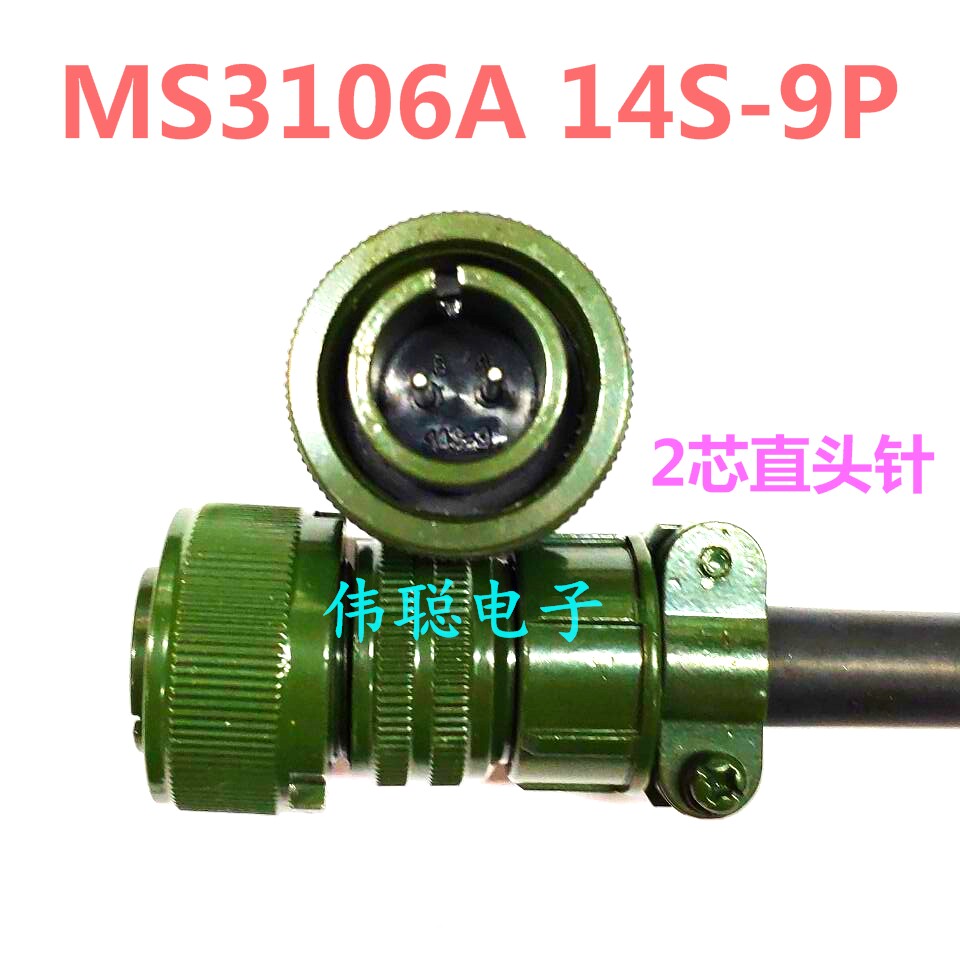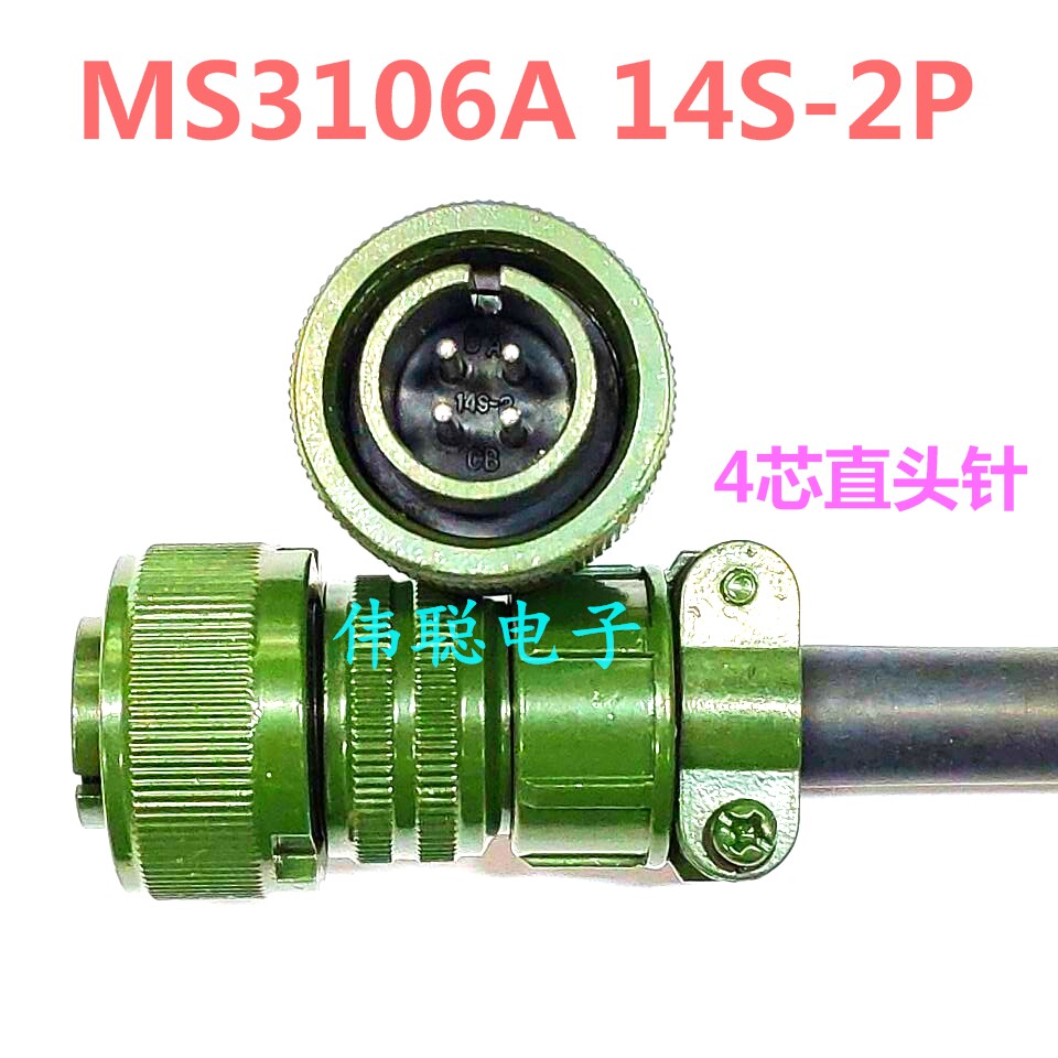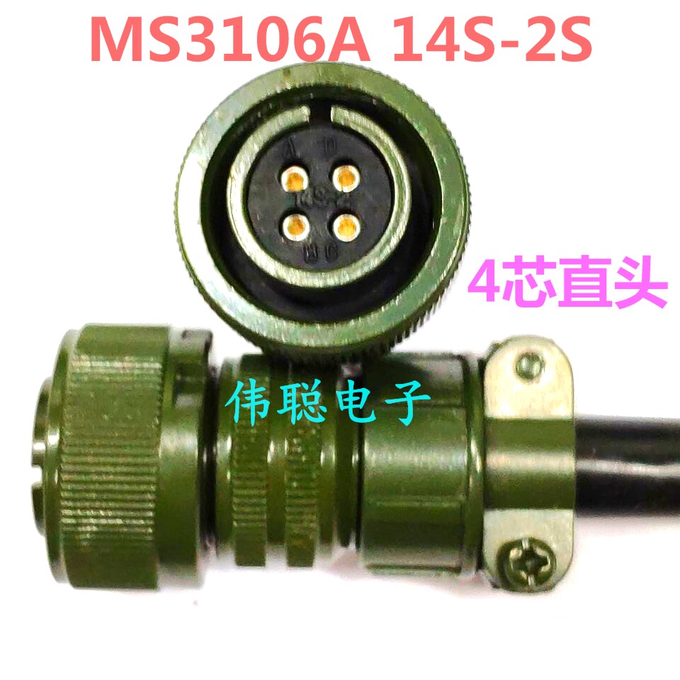 - Военный зеленый MS3106A12S-3S 2-жильный, с прямым отверстием