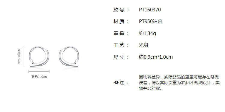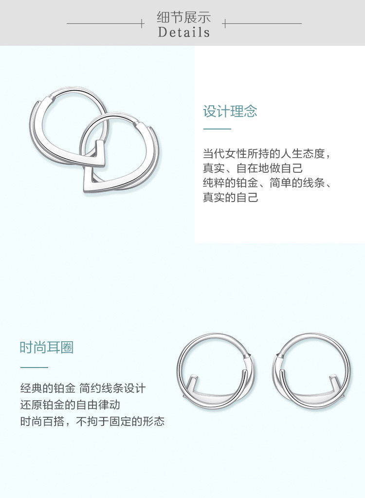 周大福 Платиновые серьги, платина 950 пробы, платина 160370 пробы