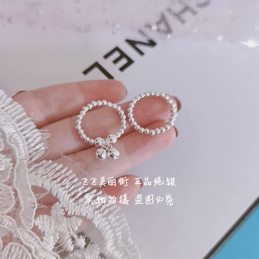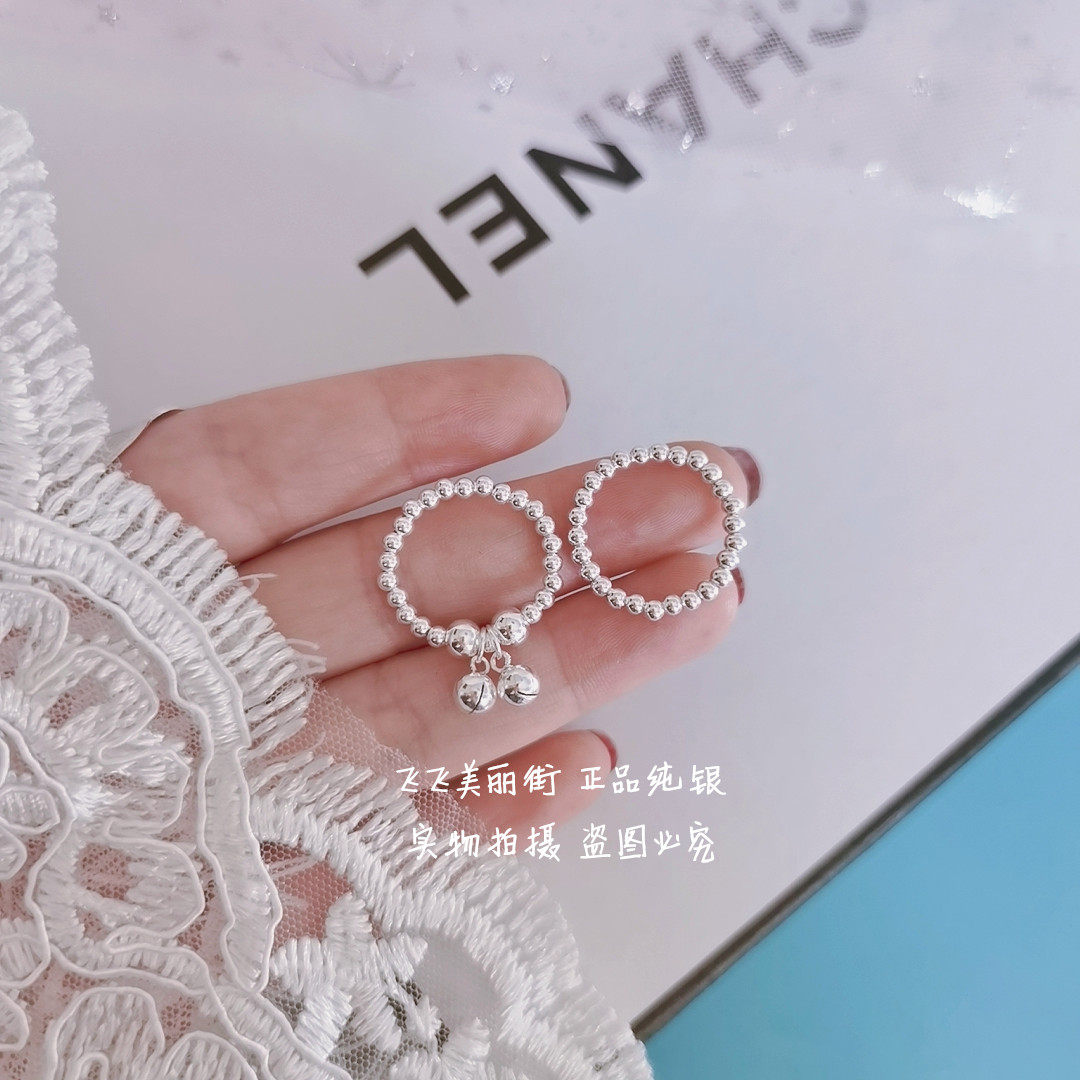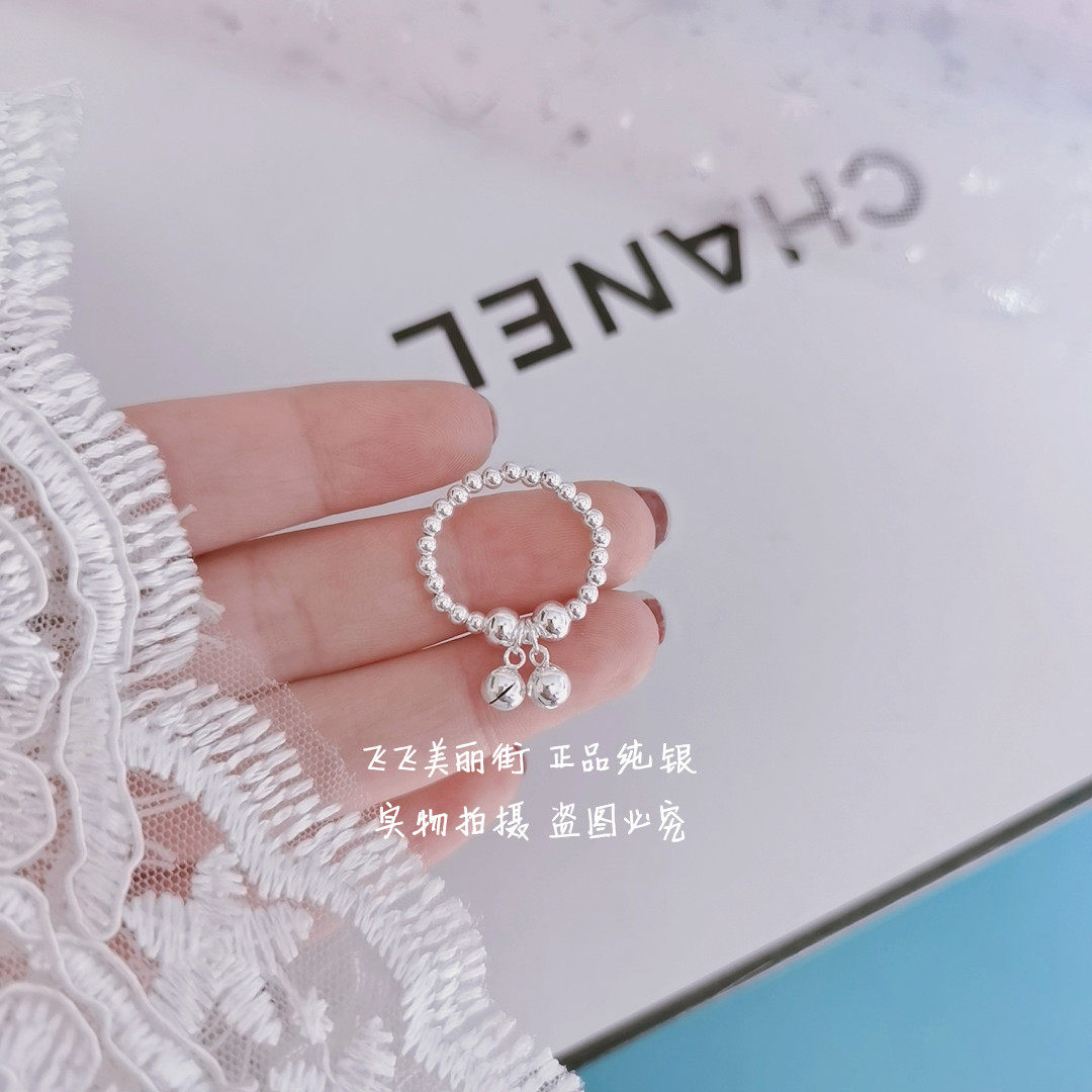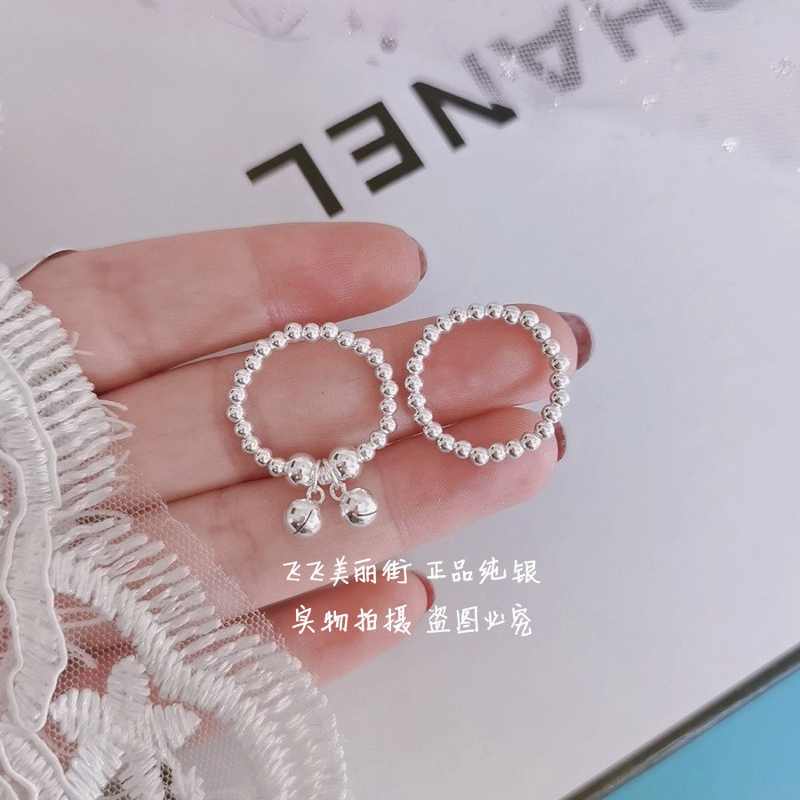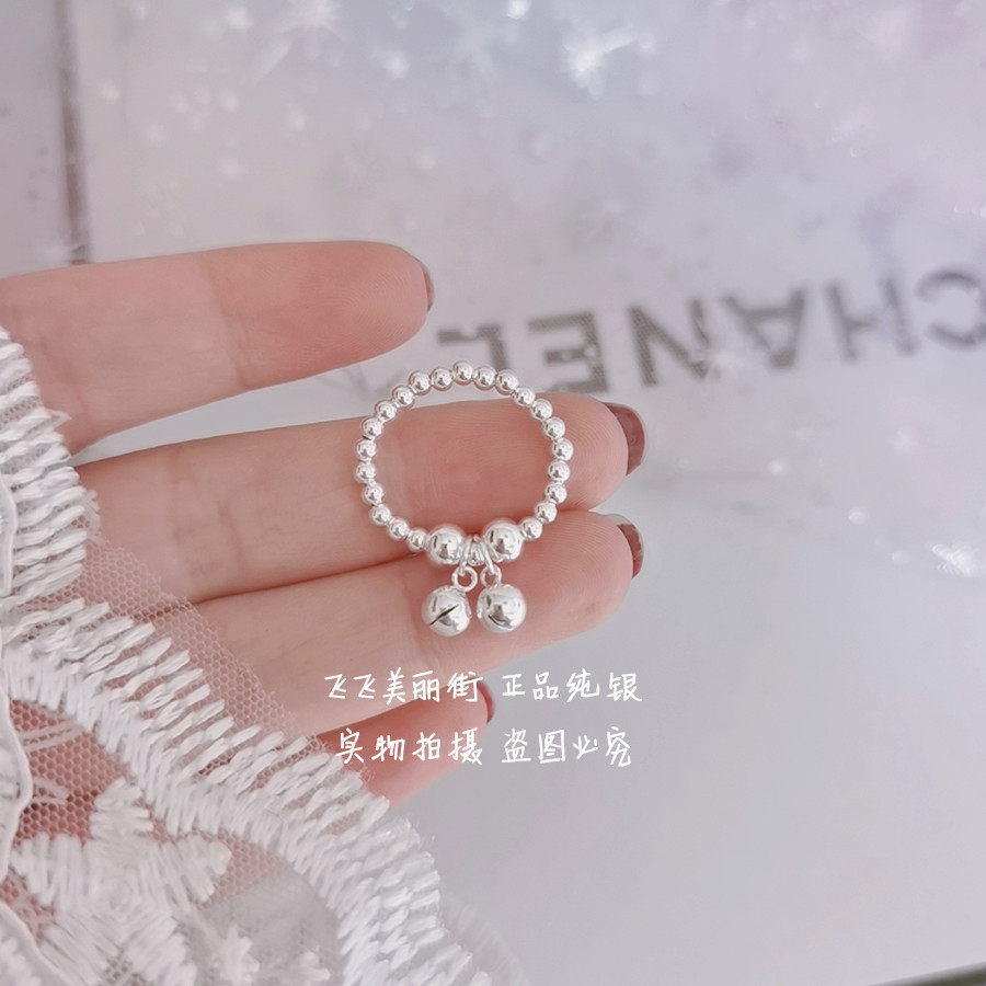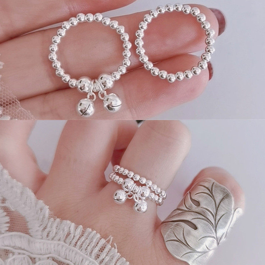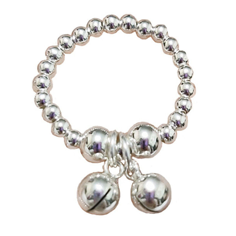 Кольцо, колокольчик, эластичный модный мяч с бусинами, серебро 925 пробы, серебро 925 пробы, на указательный палец