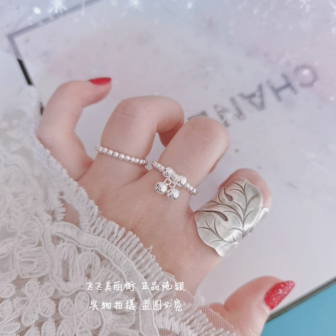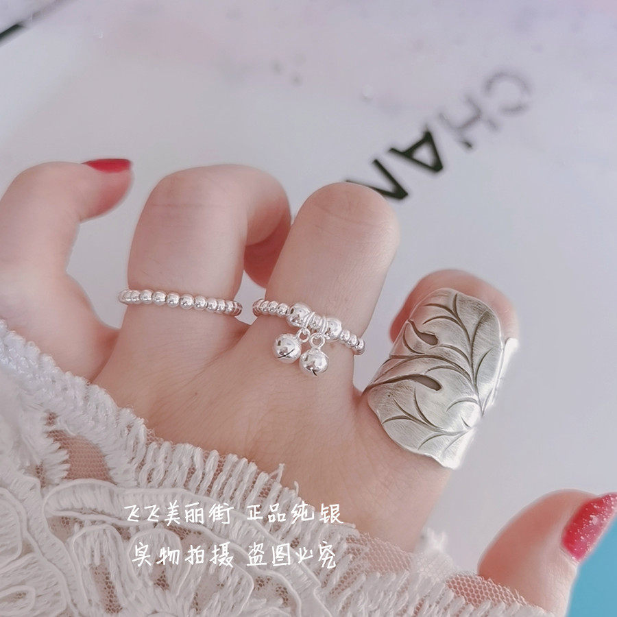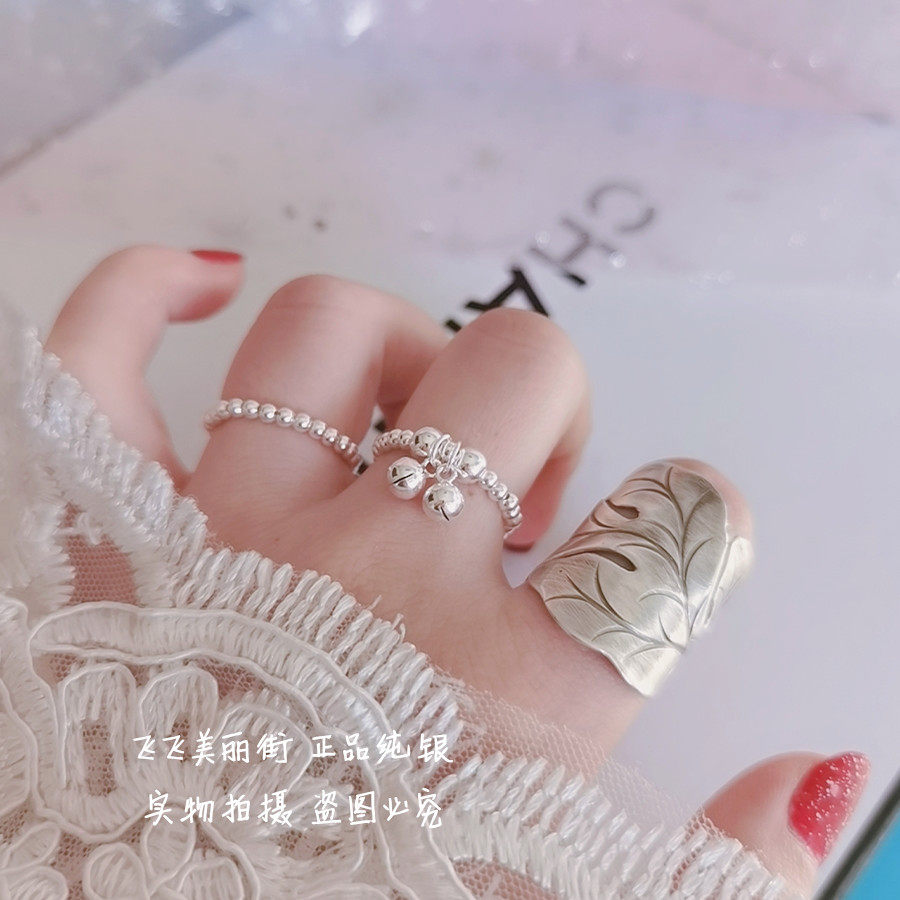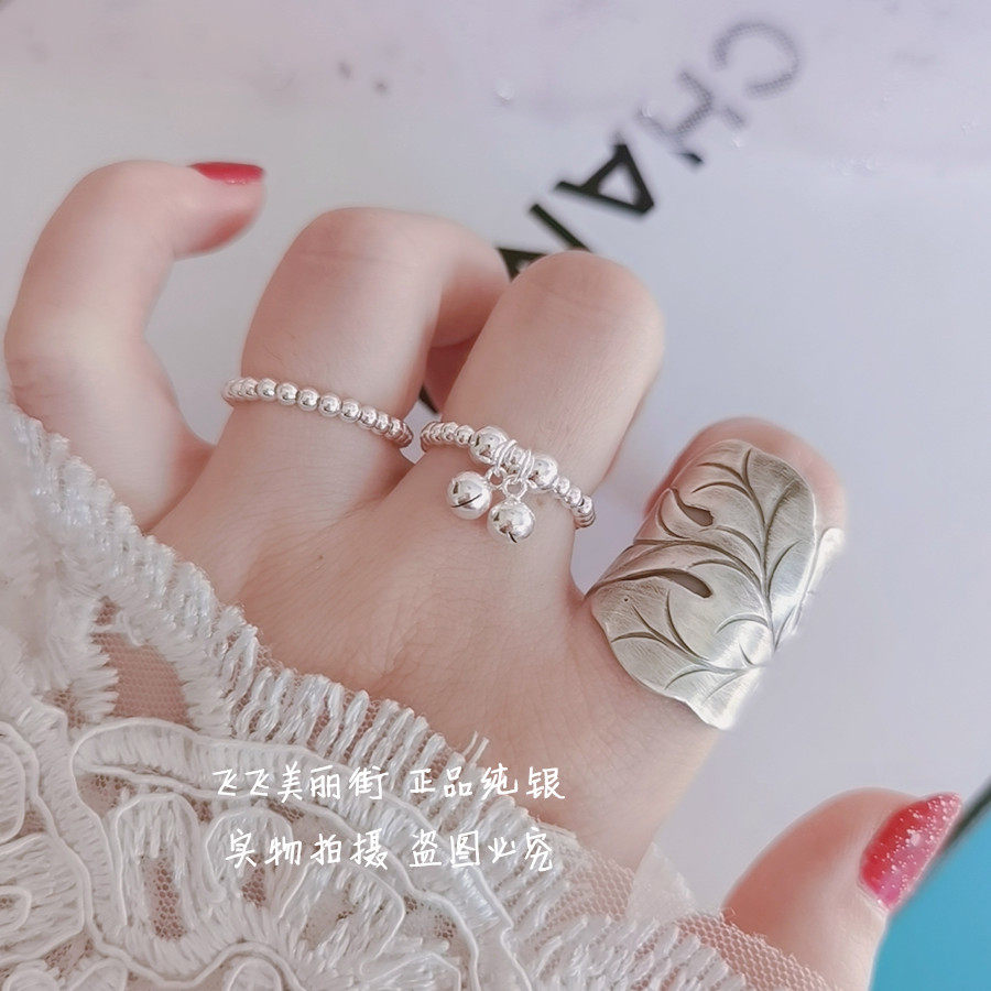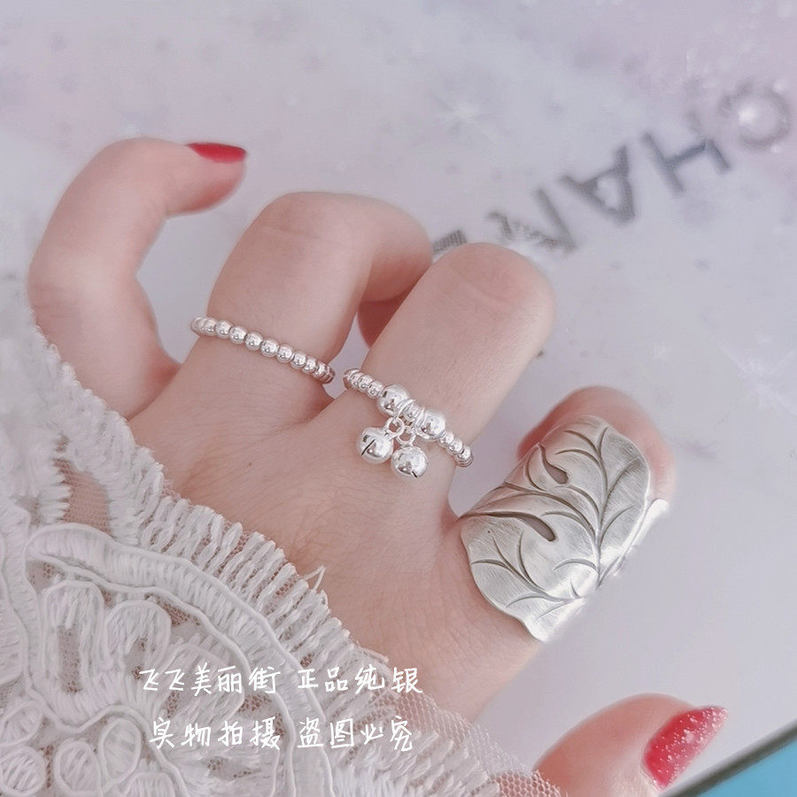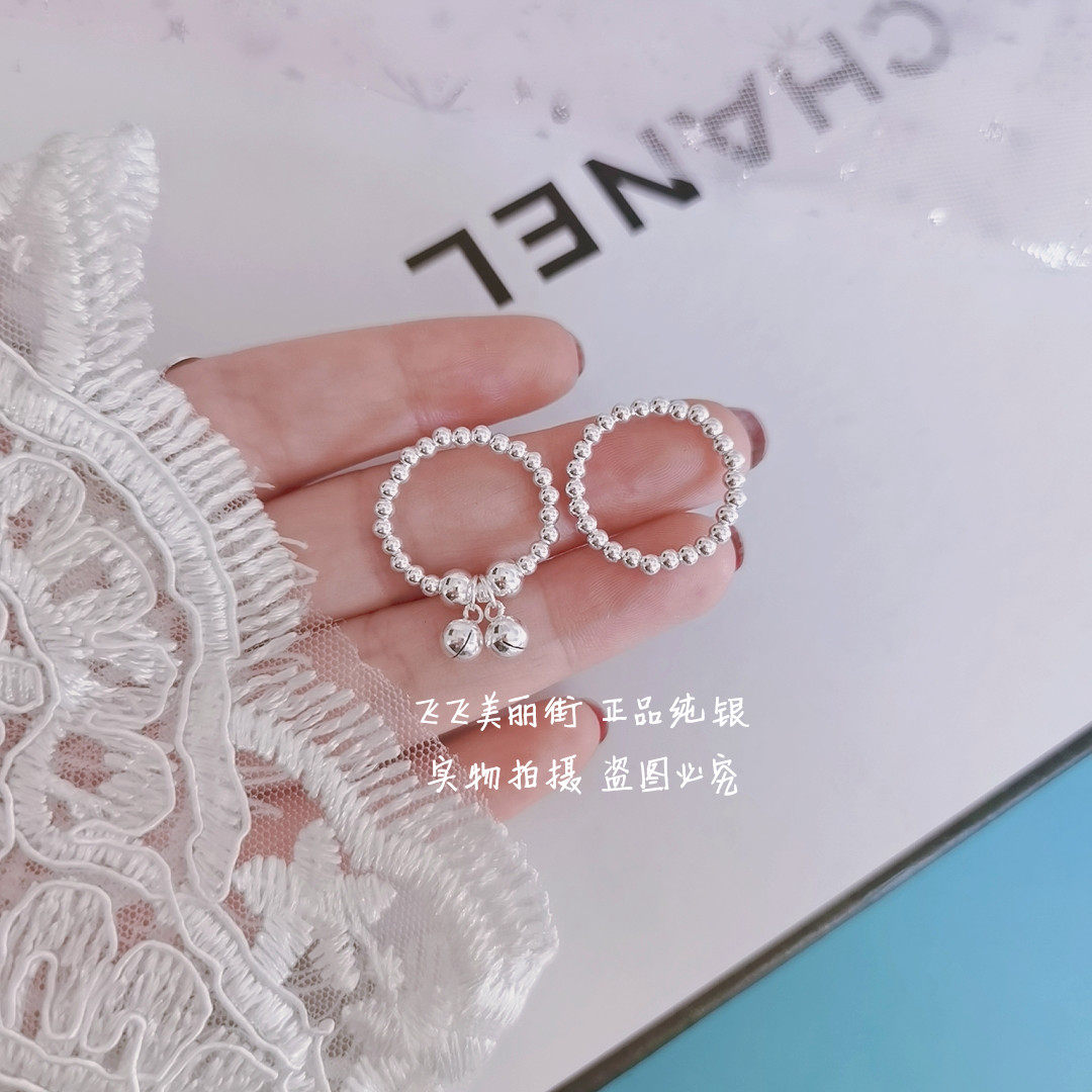Кольцо, колокольчик, эластичный модный мяч с бусинами, серебро 925 пробы, серебро 925 пробы, на указательный палец