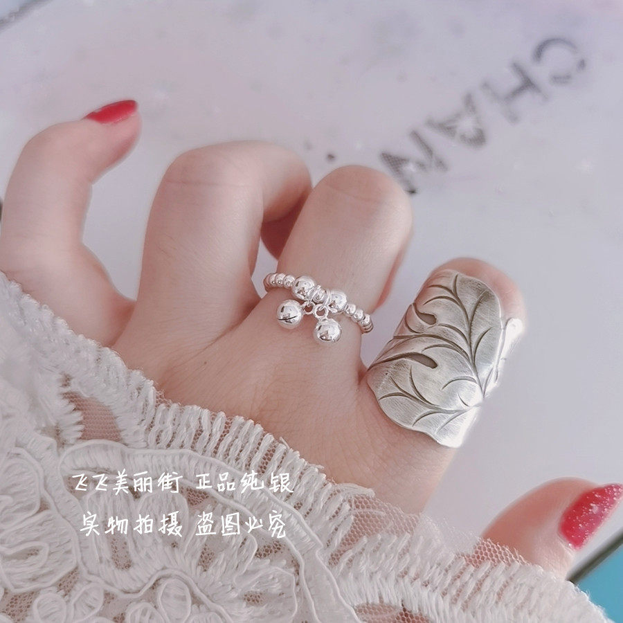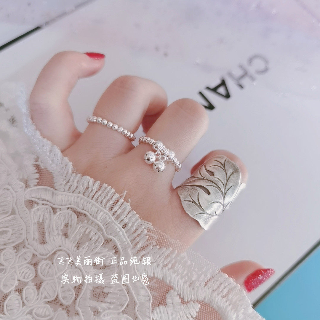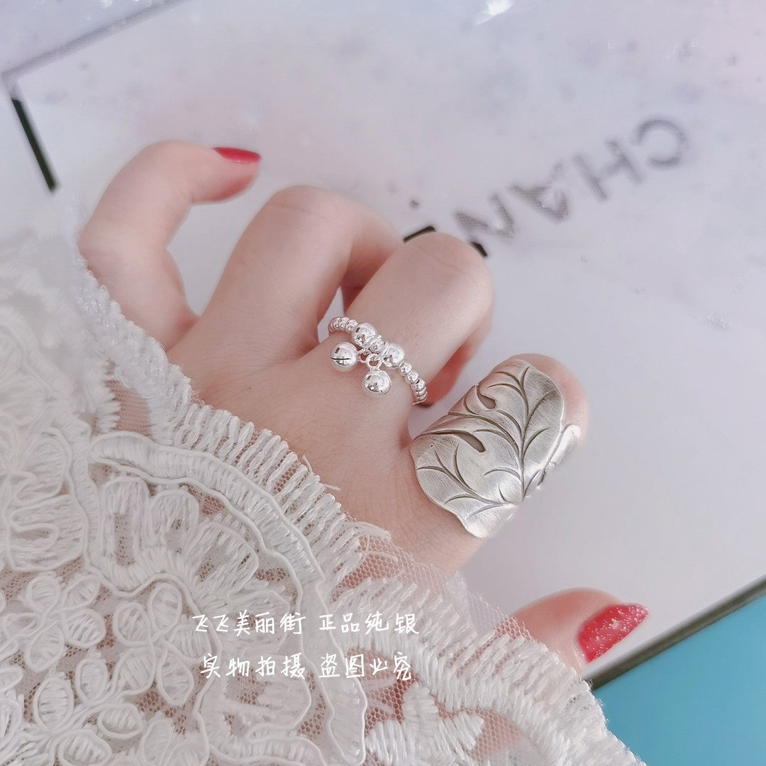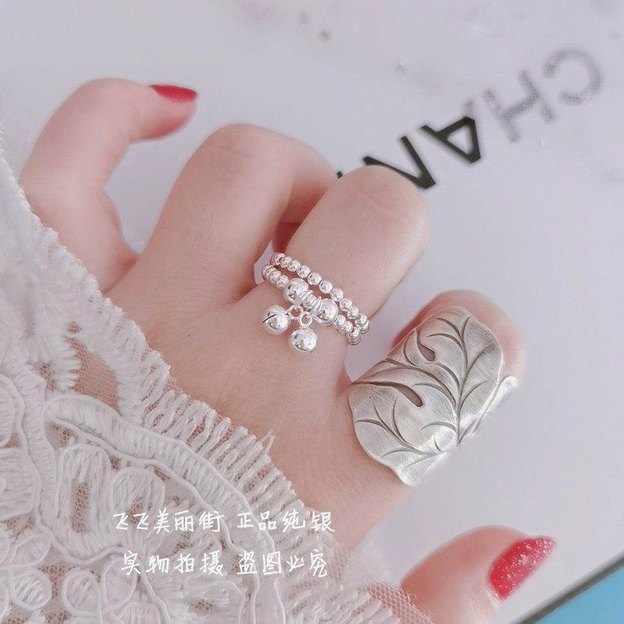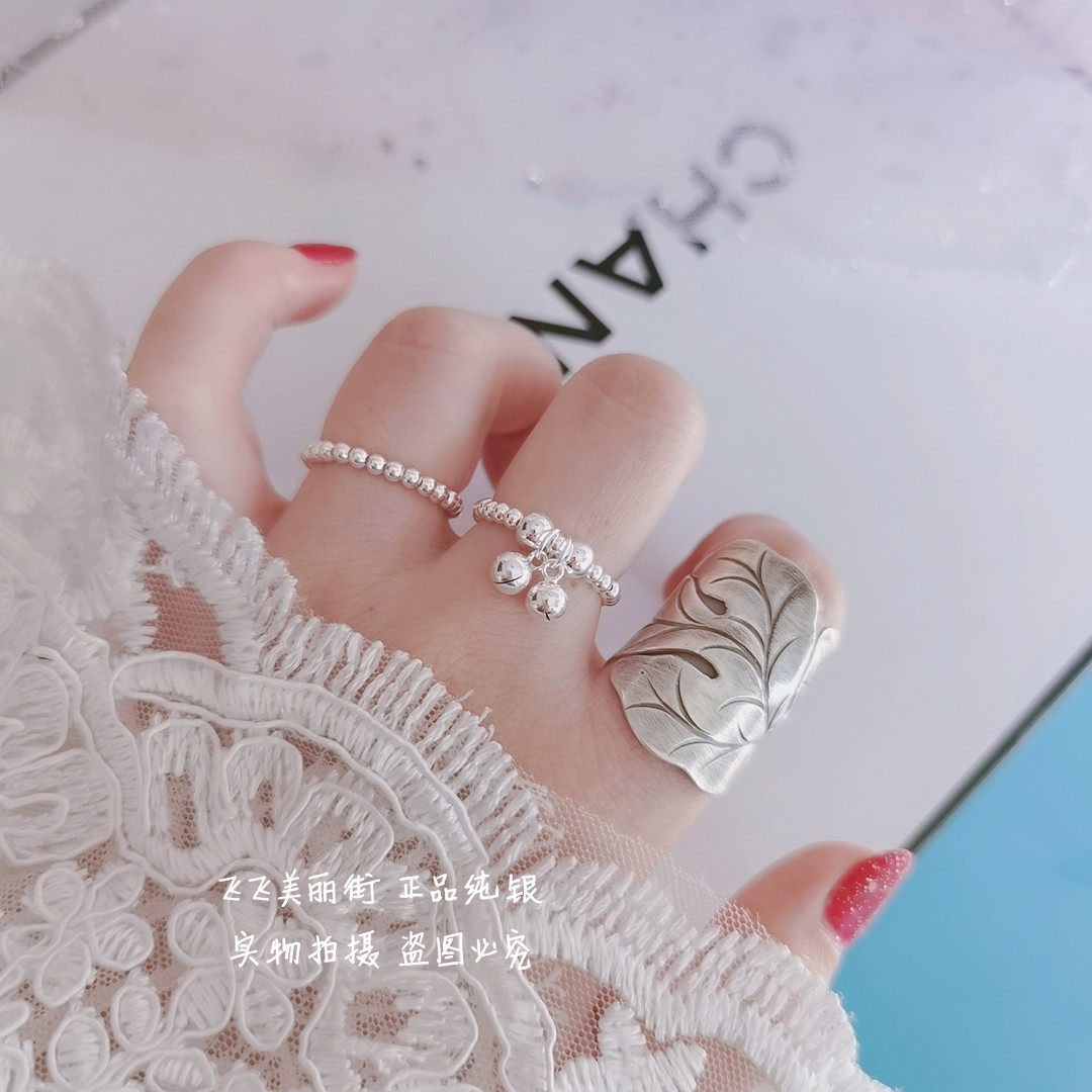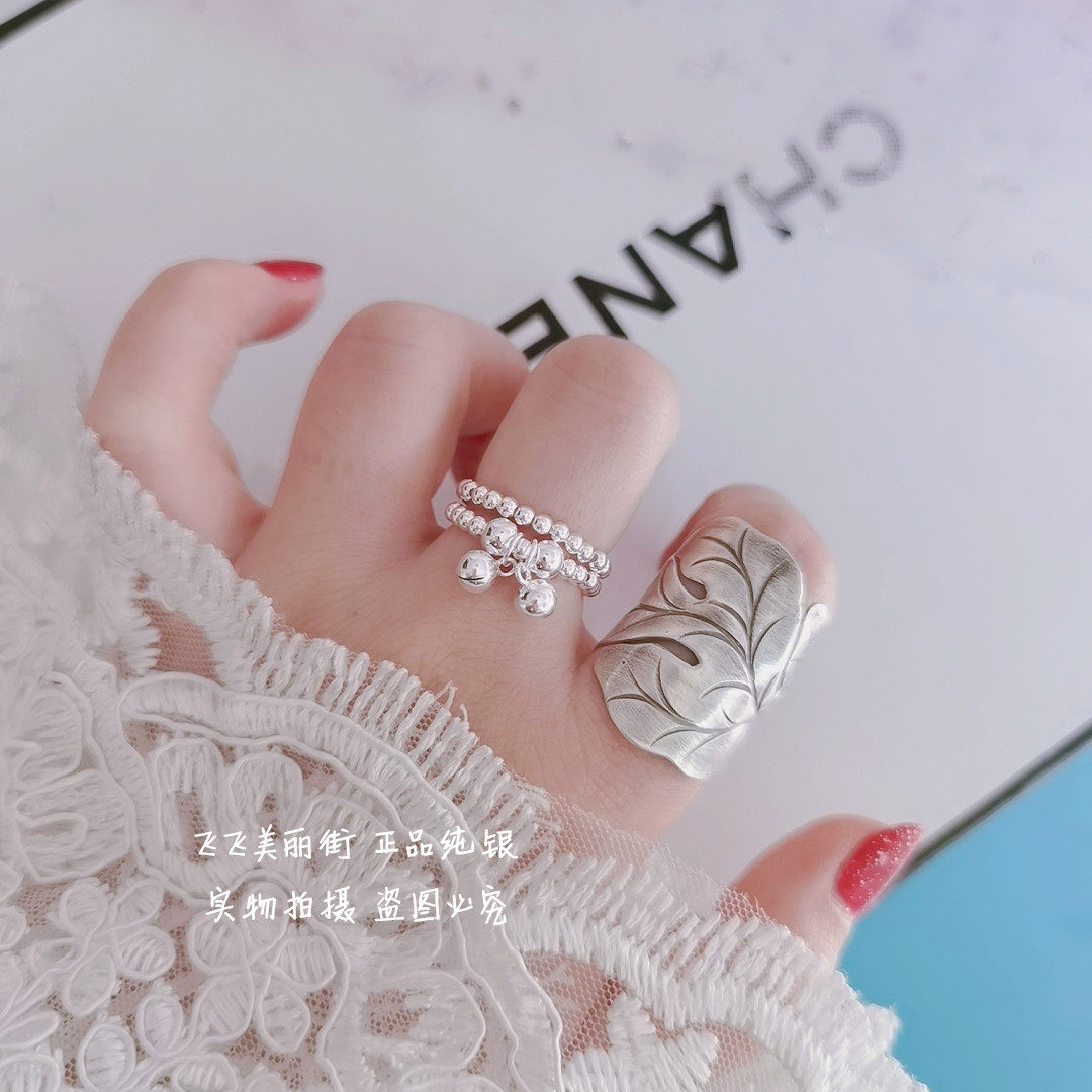 Кольцо, колокольчик, эластичный модный мяч с бусинами, серебро 925 пробы, серебро 925 пробы, на указательный палец
