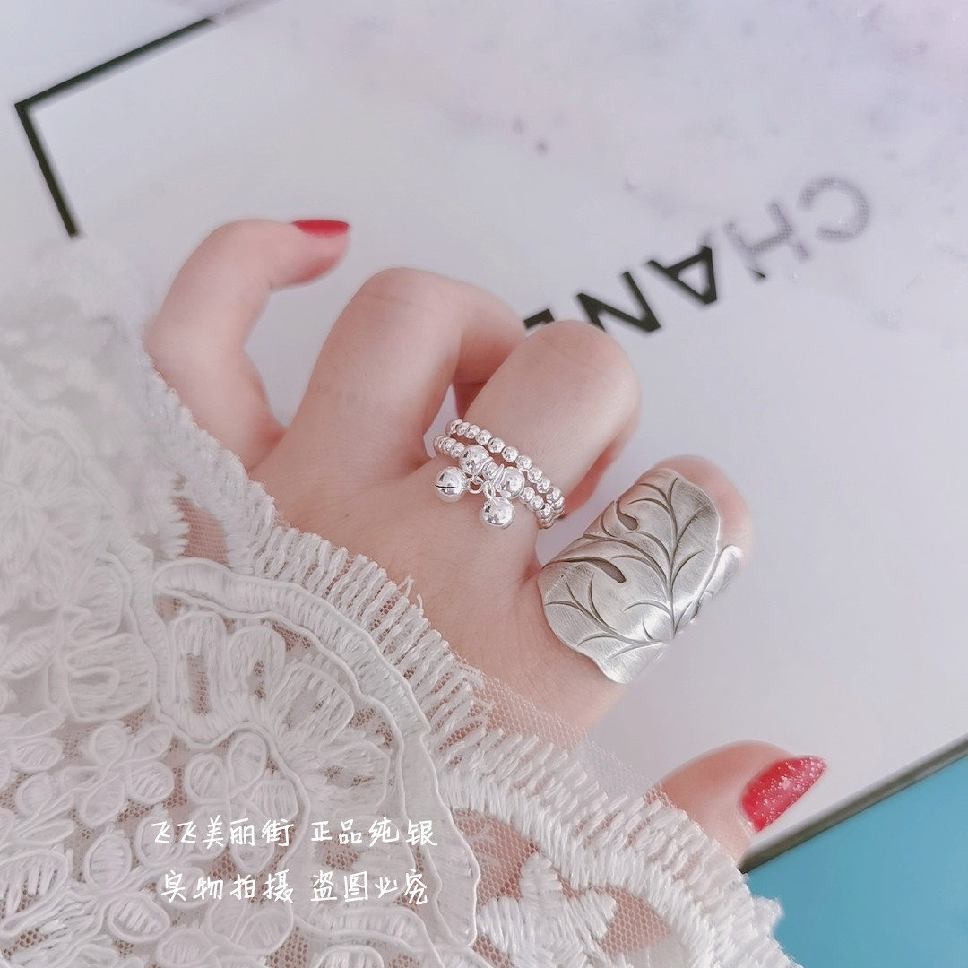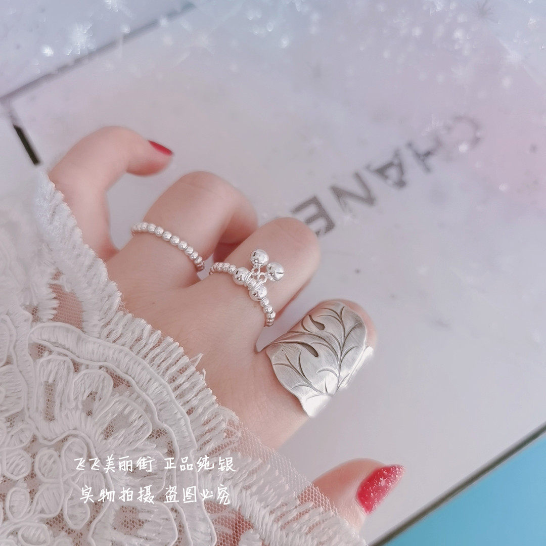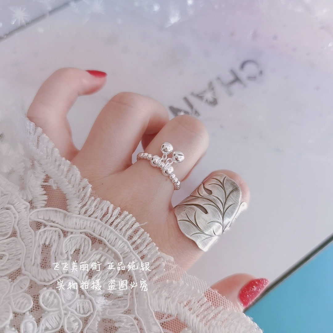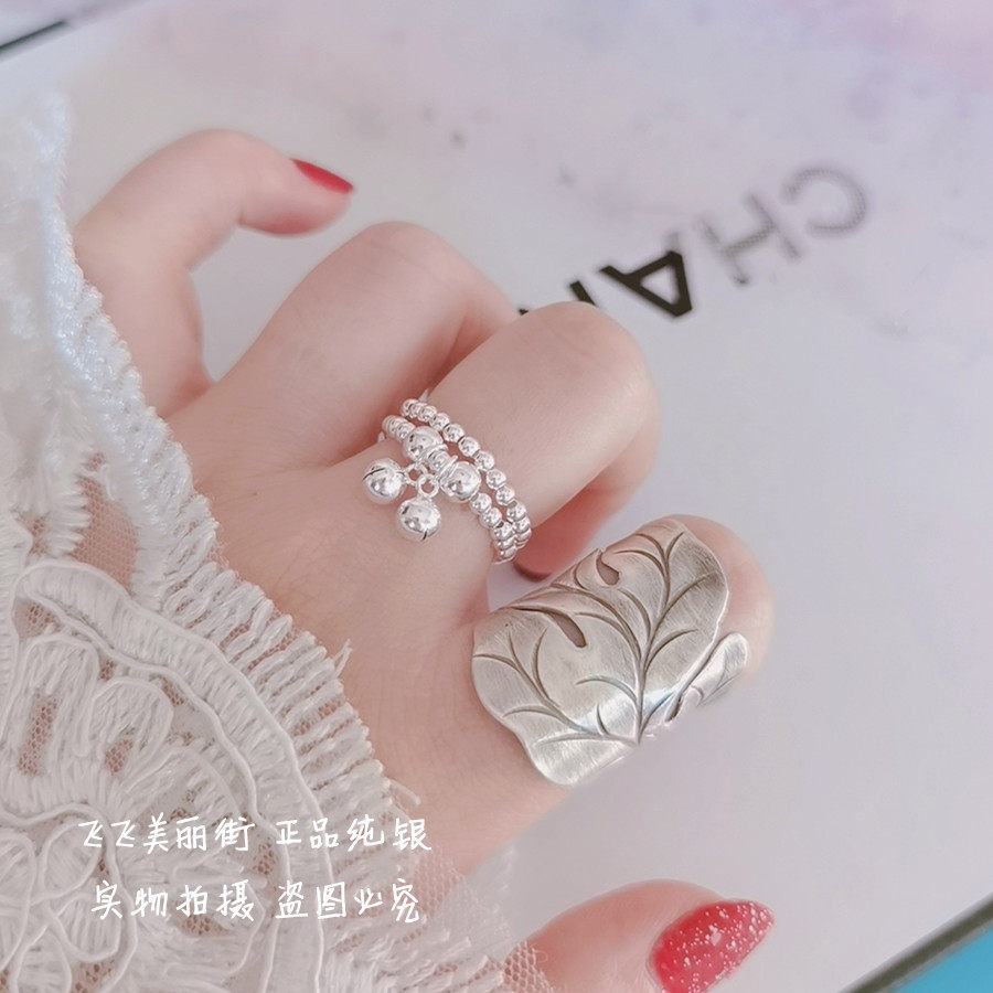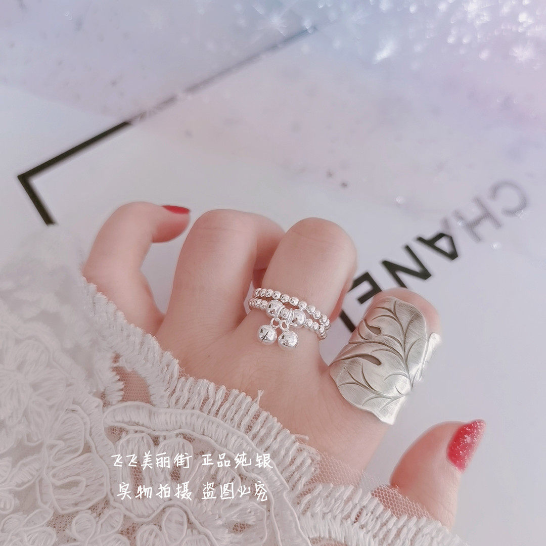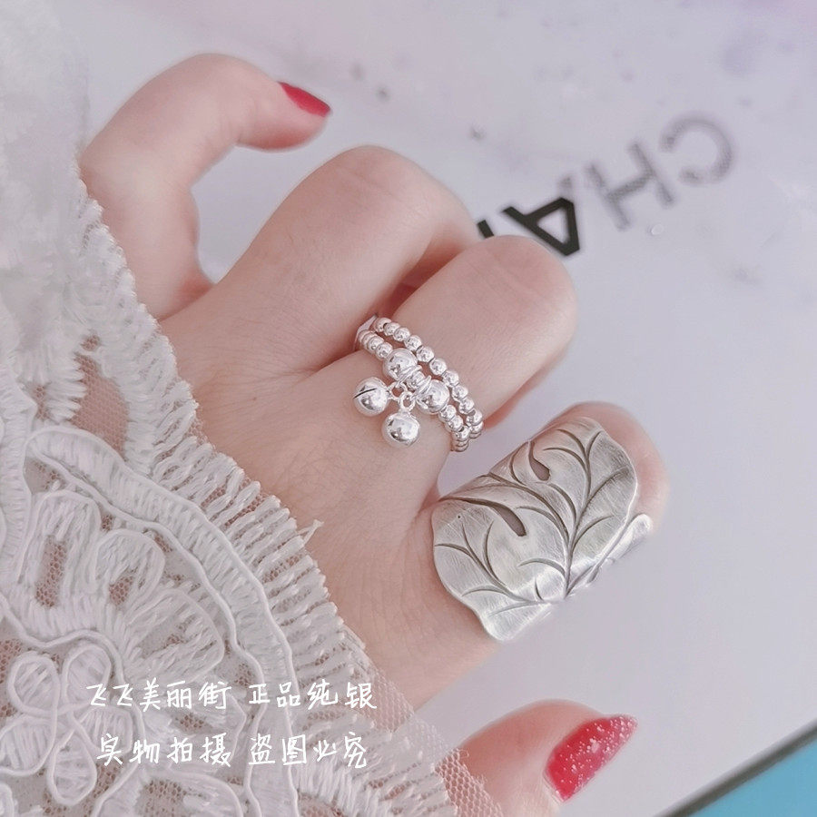 Кольцо, колокольчик, эластичный модный мяч с бусинами, серебро 925 пробы, серебро 925 пробы, на указательный палец