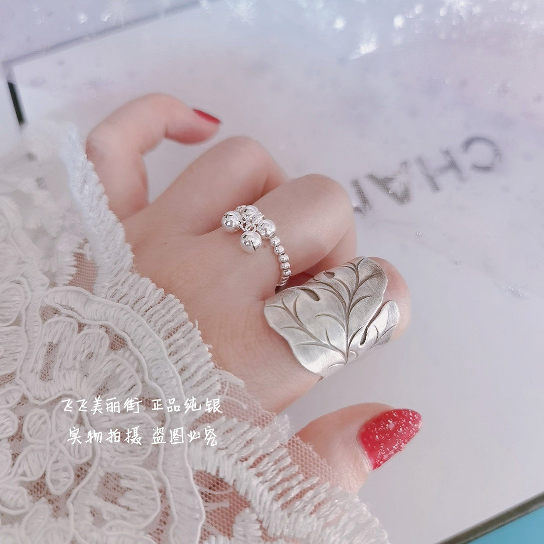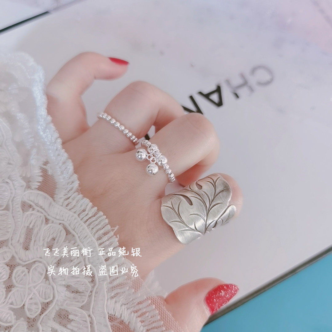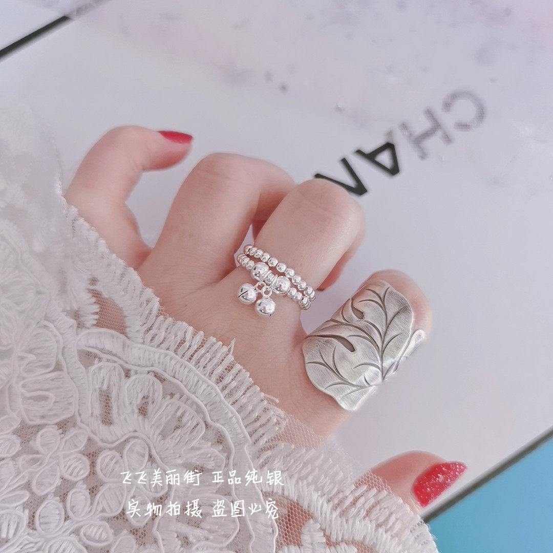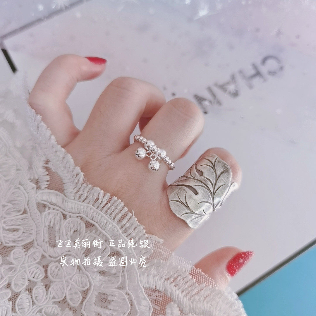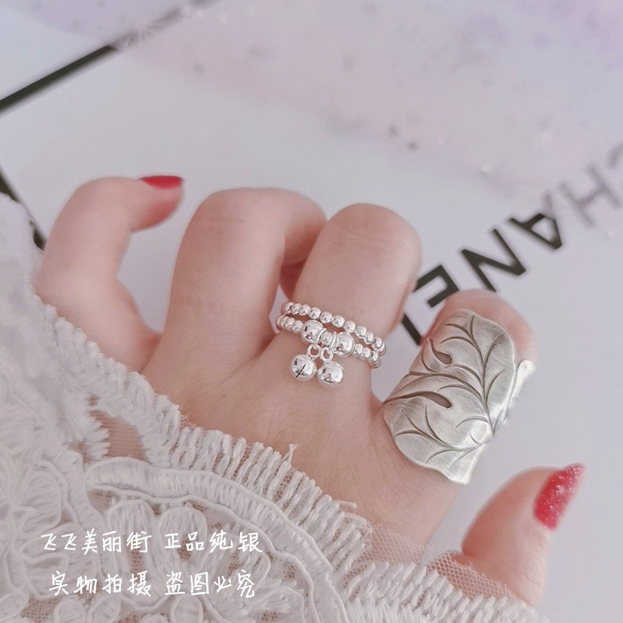 Кольцо, колокольчик, эластичный модный мяч с бусинами, серебро 925 пробы, серебро 925 пробы, на указательный палец