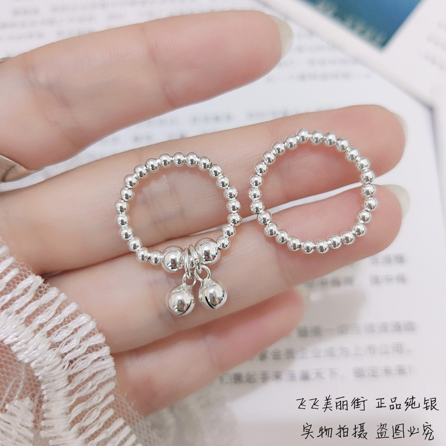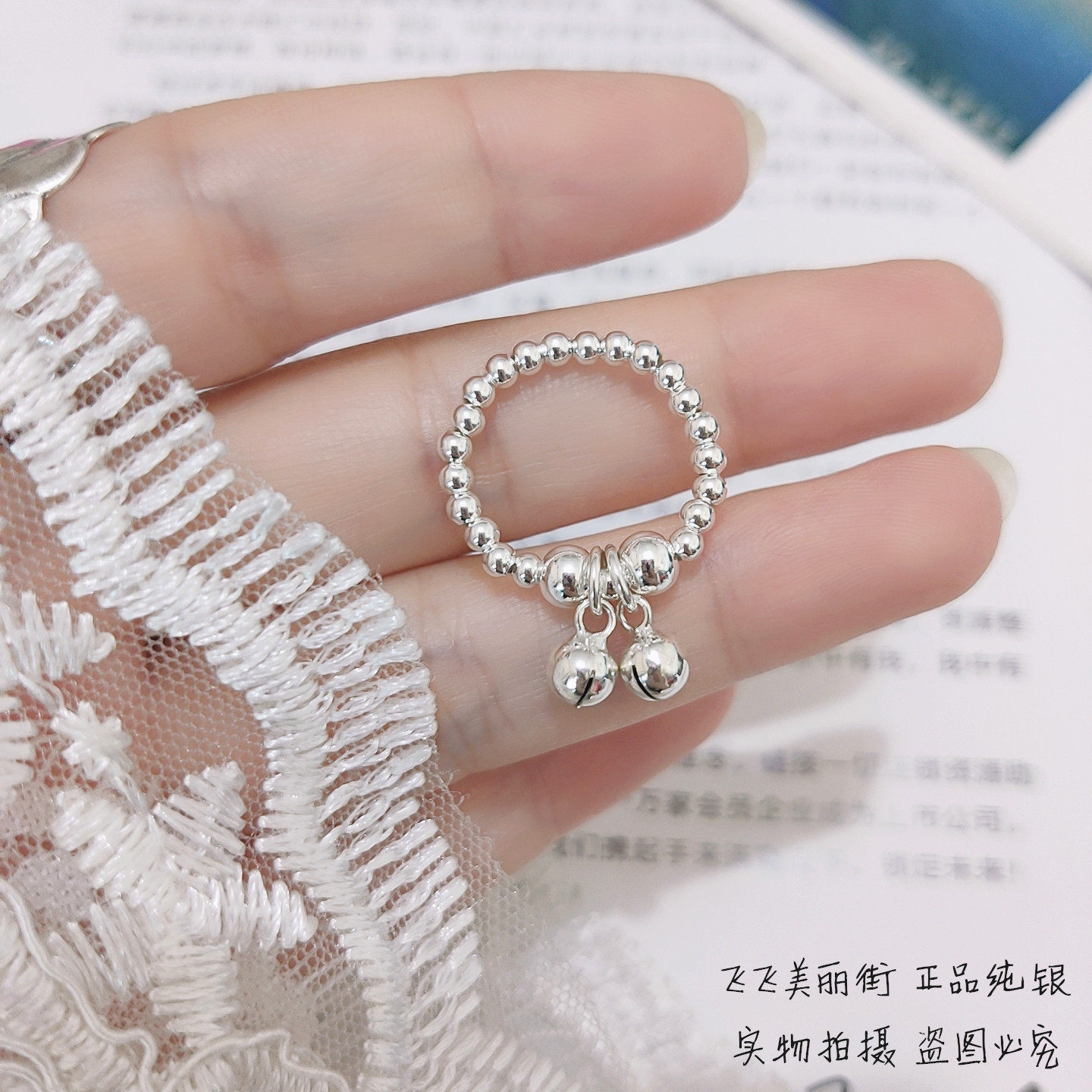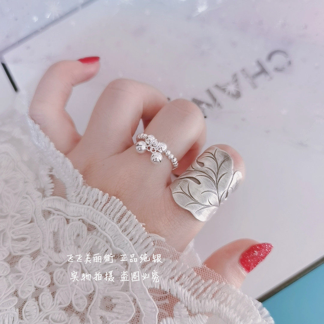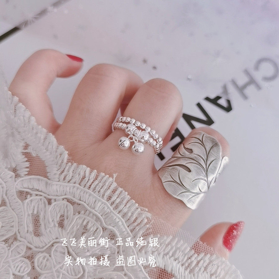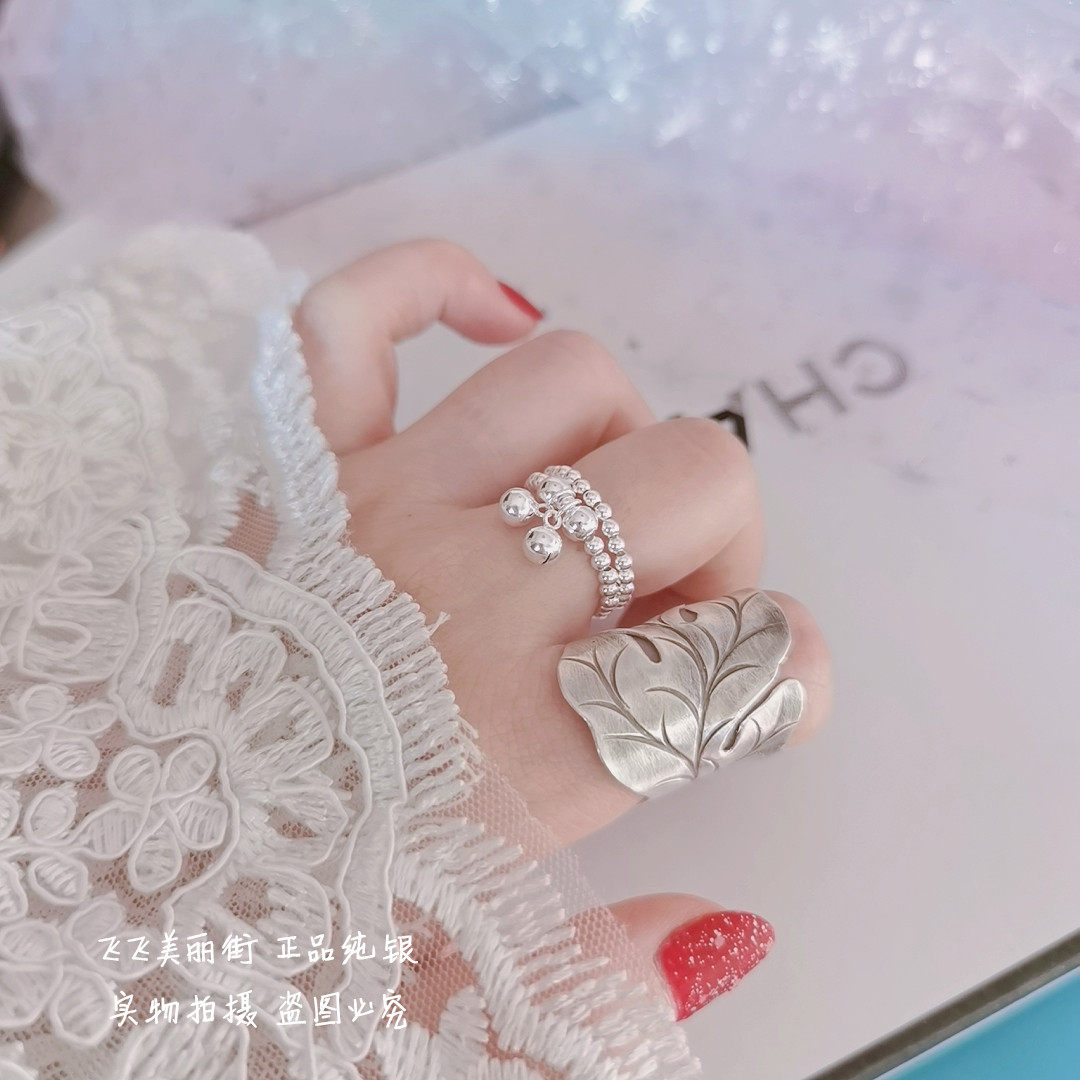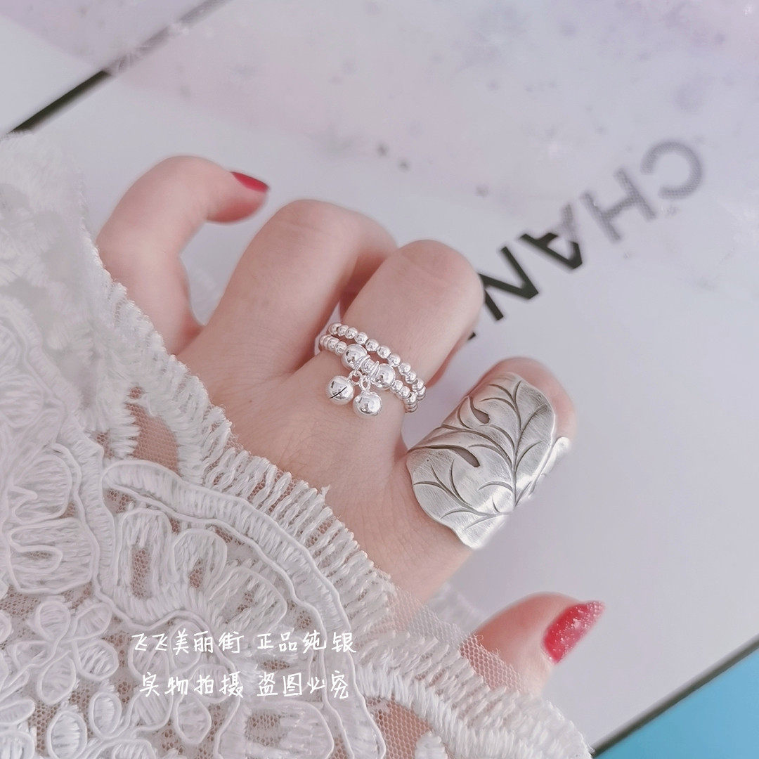 Кольцо, колокольчик, эластичный модный мяч с бусинами, серебро 925 пробы, серебро 925 пробы, на указательный палец