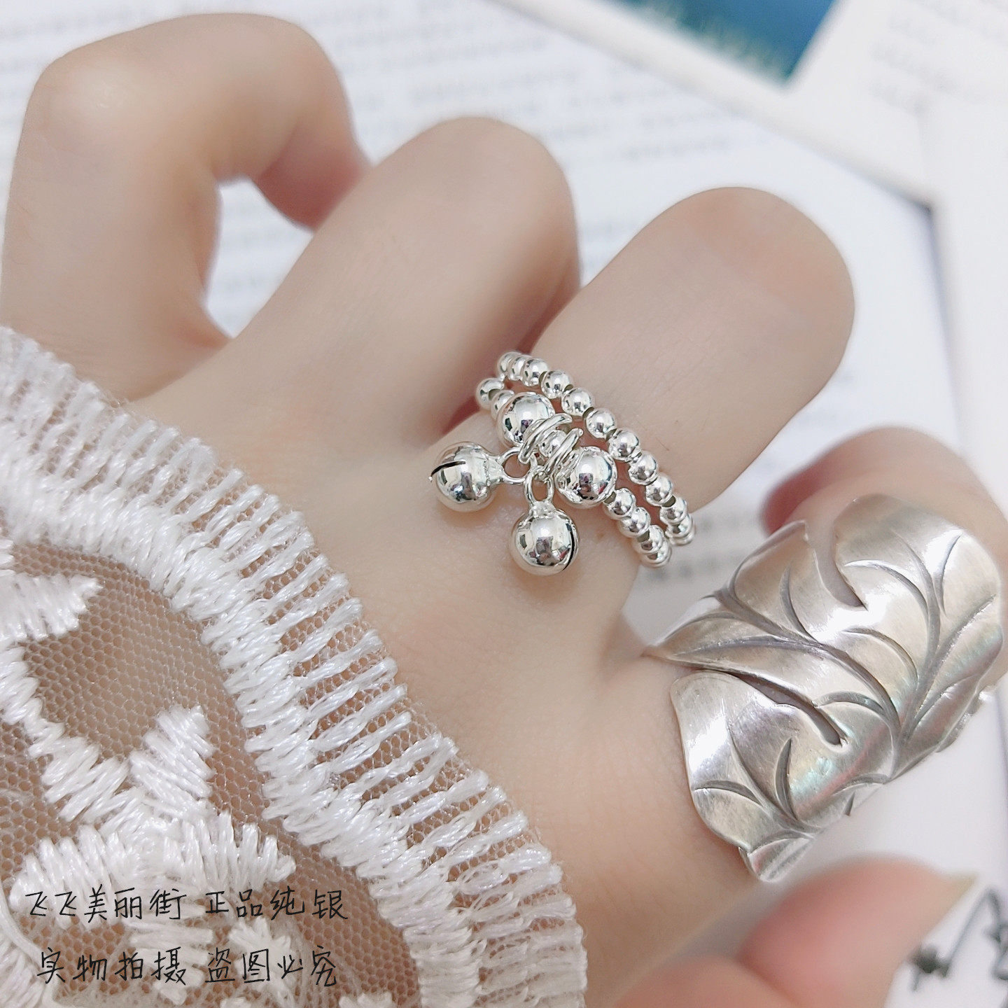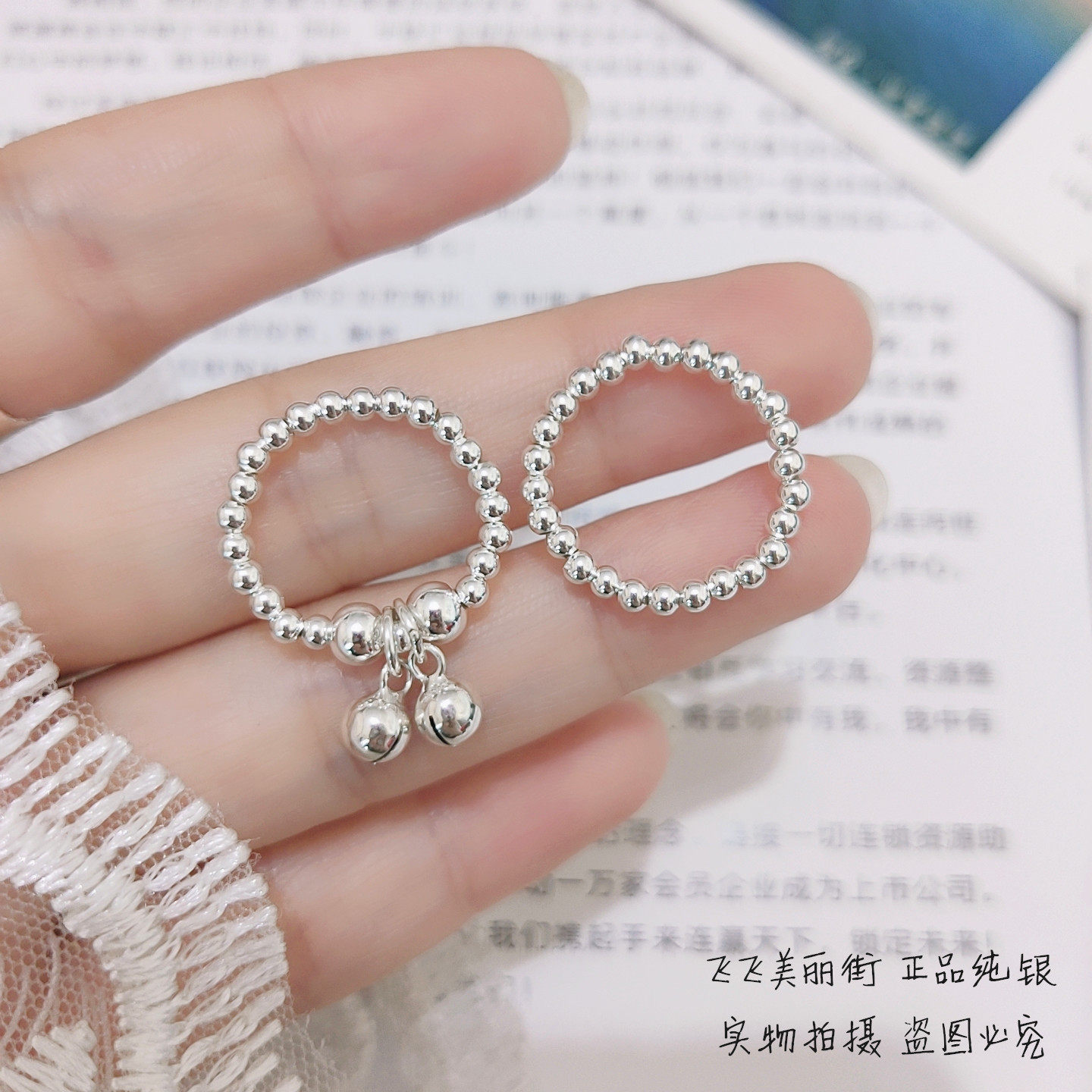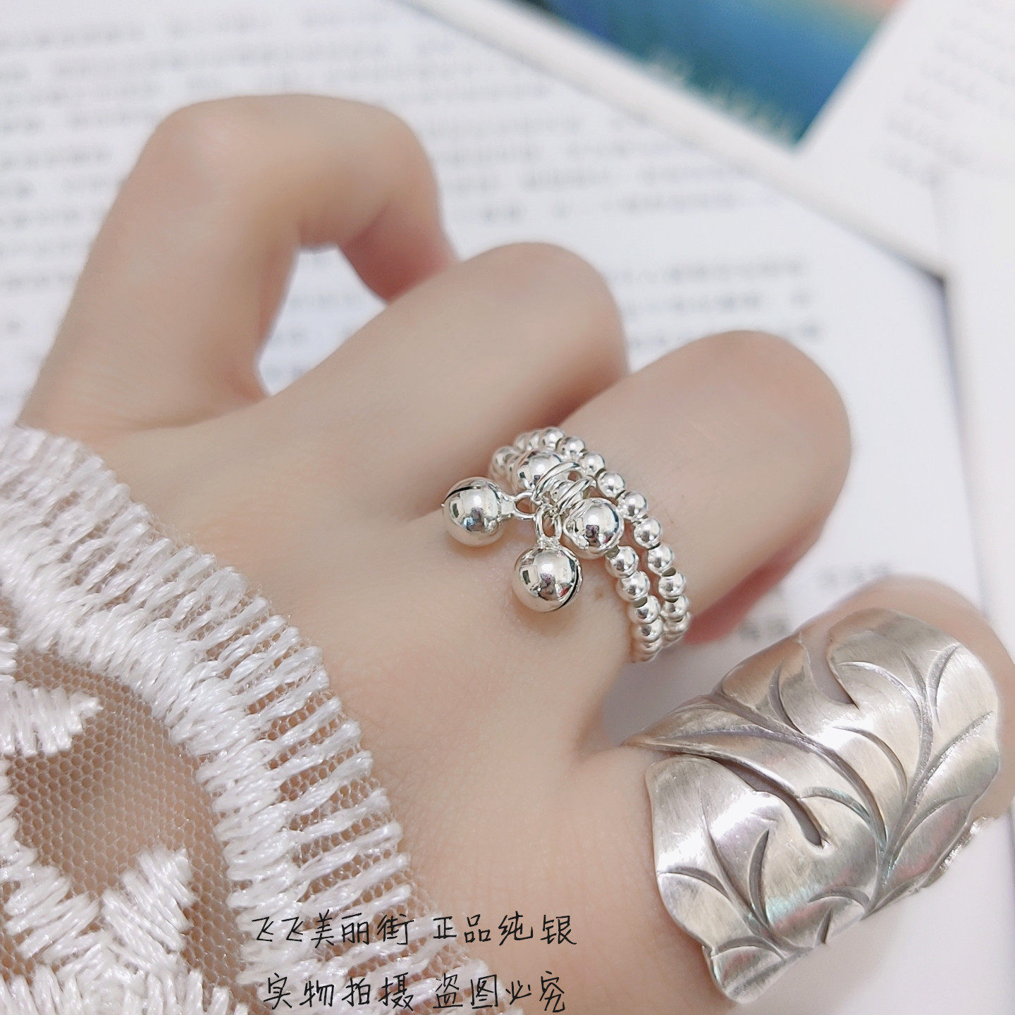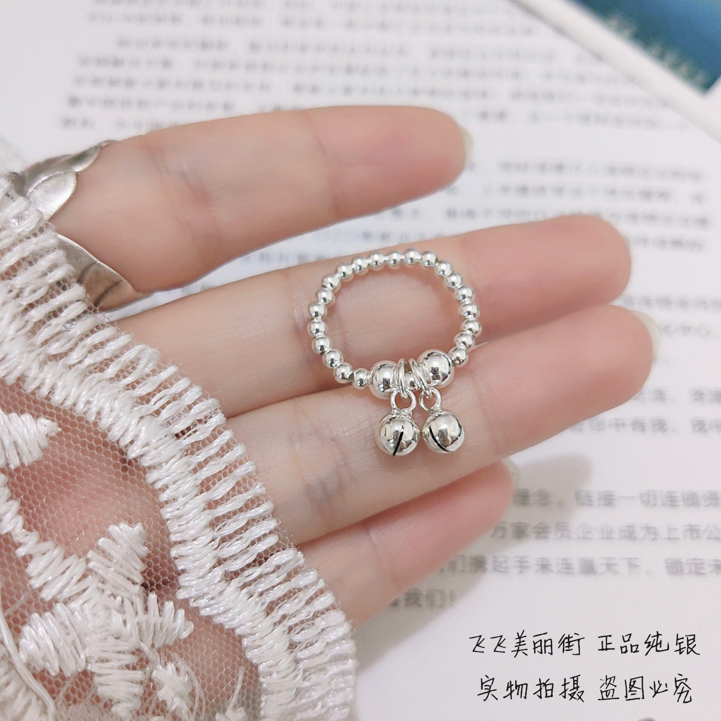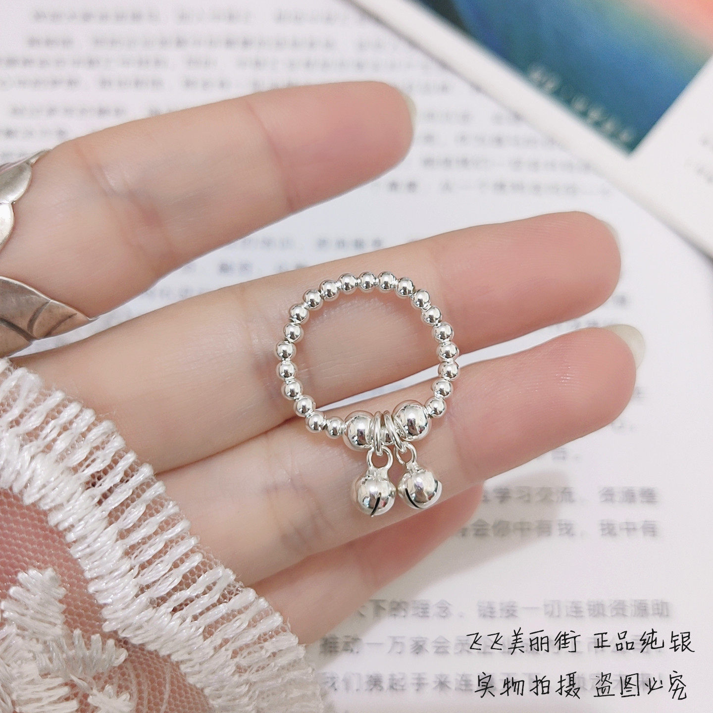 Кольцо, колокольчик, эластичный модный мяч с бусинами, серебро 925 пробы, серебро 925 пробы, на указательный палец