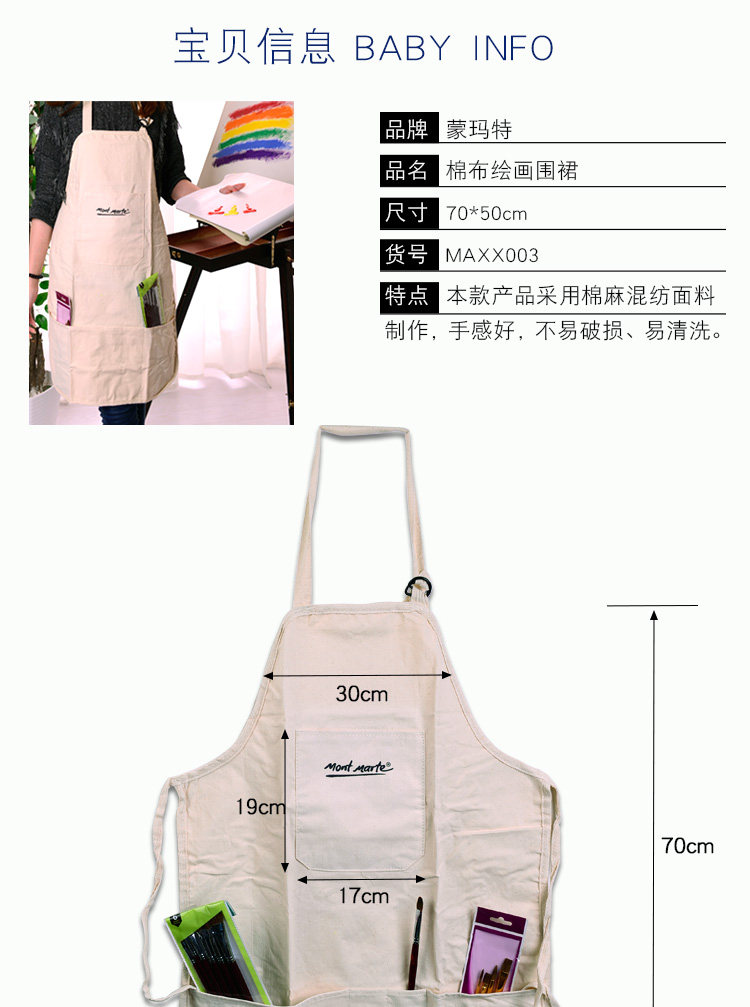 蒙玛特 Фартук, нагрудник для взрослых для работы, акрил, пигментированная гуашь, из хлопка и льна