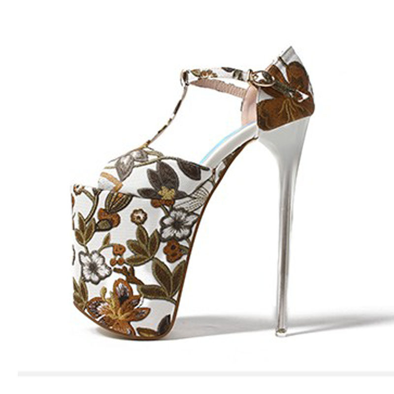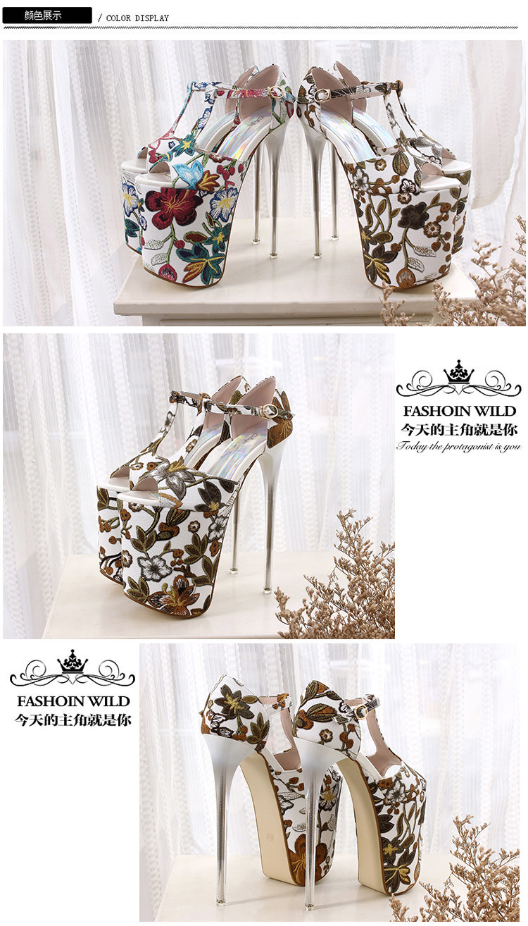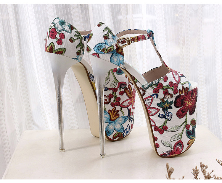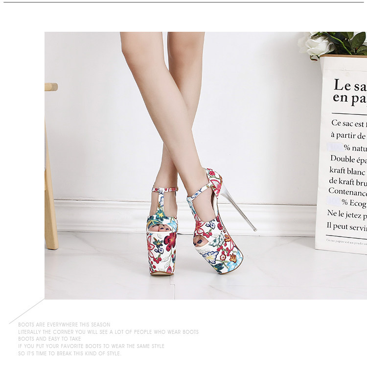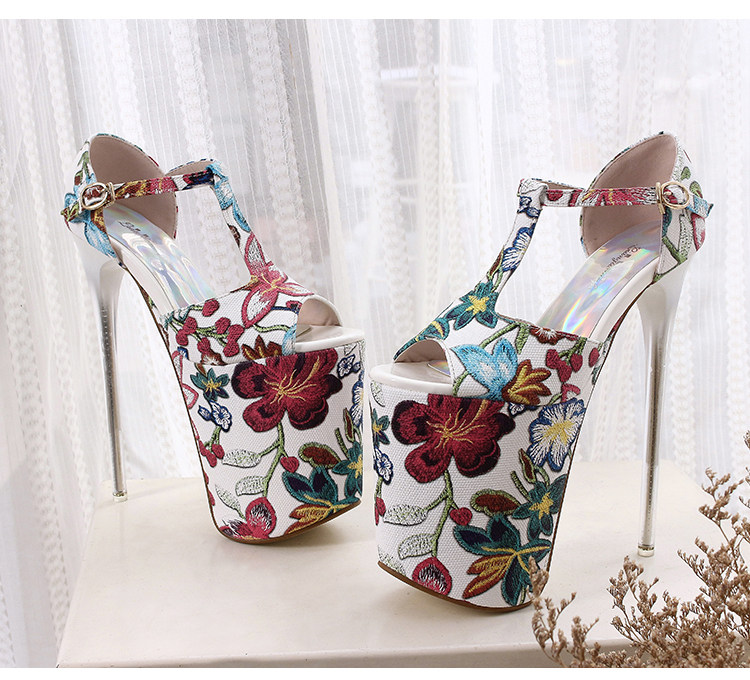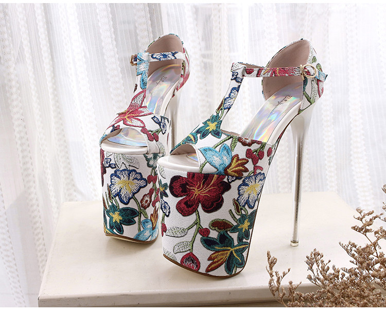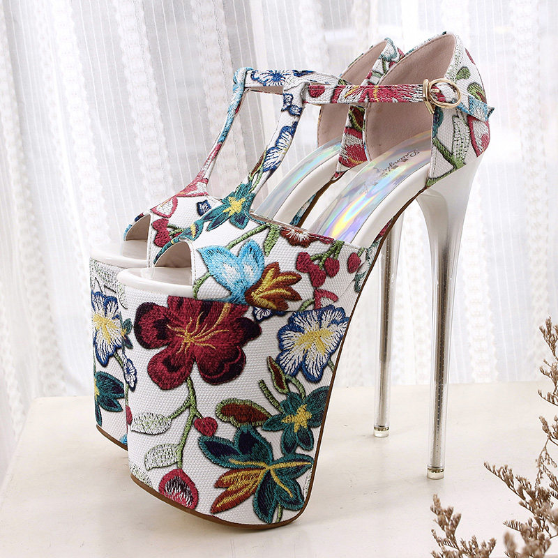 Летние новые стильные ультравысокие туфли на шпильке высотой 20 см и водонепроницаемой платформой 12 см со свежими цветами, женская обувь Т-образной формы в этническом стиле большого размера