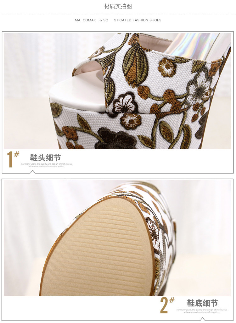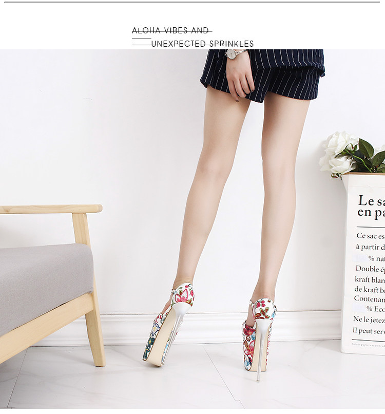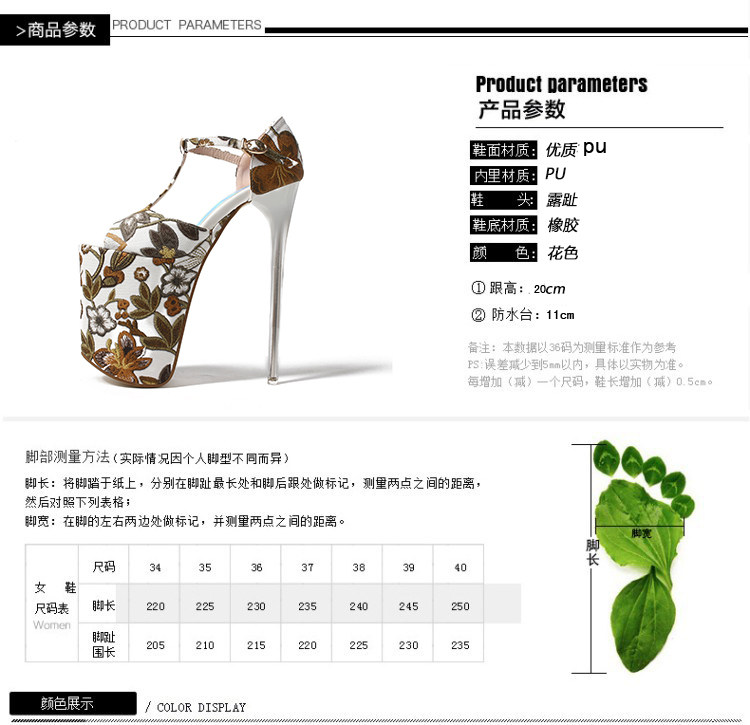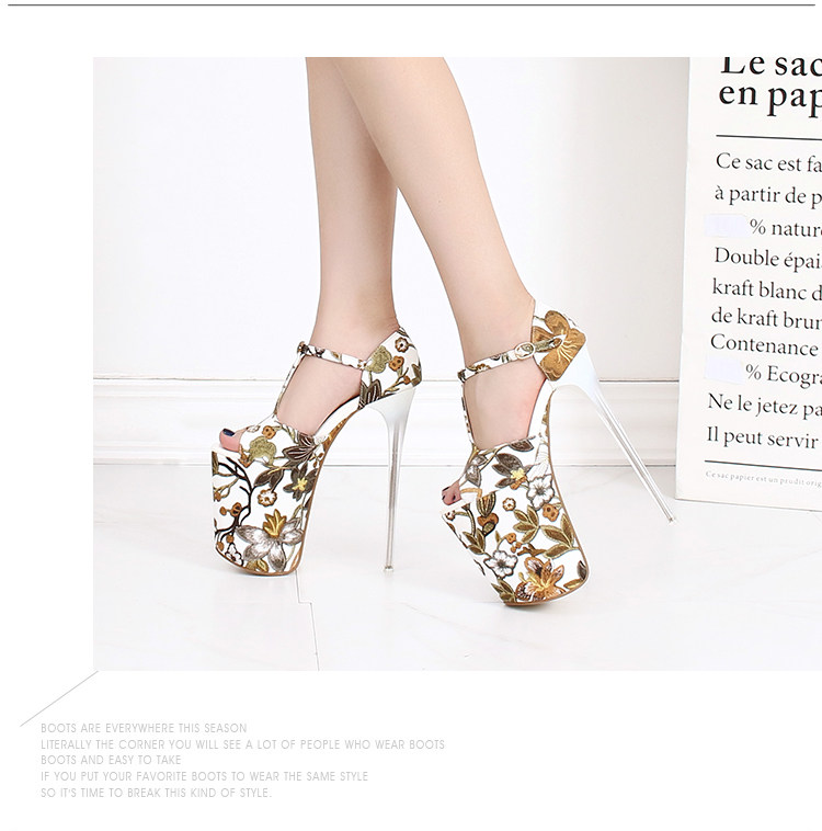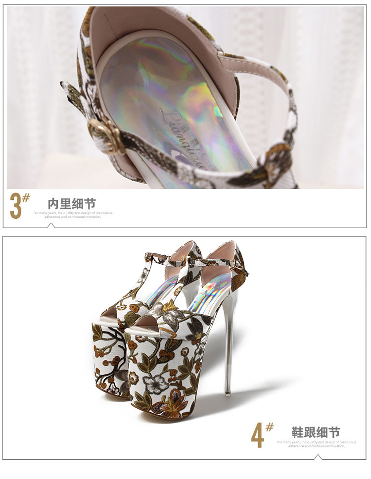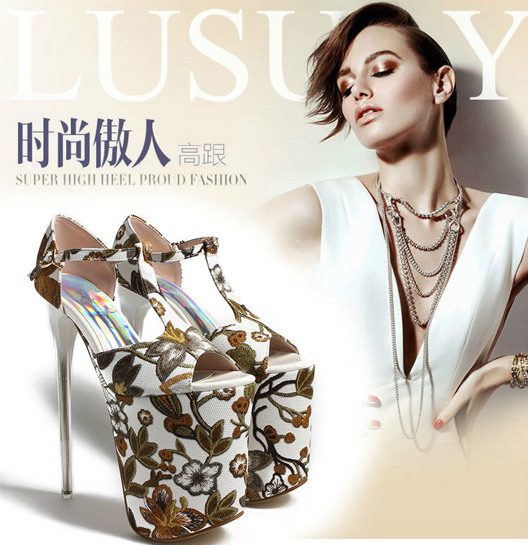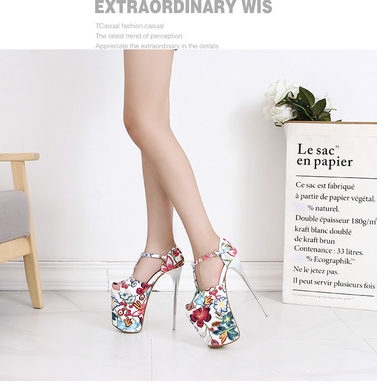 Летние новые стильные ультравысокие туфли на шпильке высотой 20 см и водонепроницаемой платформой 12 см со свежими цветами, женская обувь Т-образной формы в этническом стиле большого размера