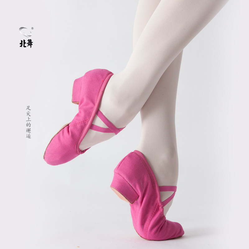 Розовая красная холст учитель шлепает каблук национальная танцевальная обувь мягкая подошва женская танце