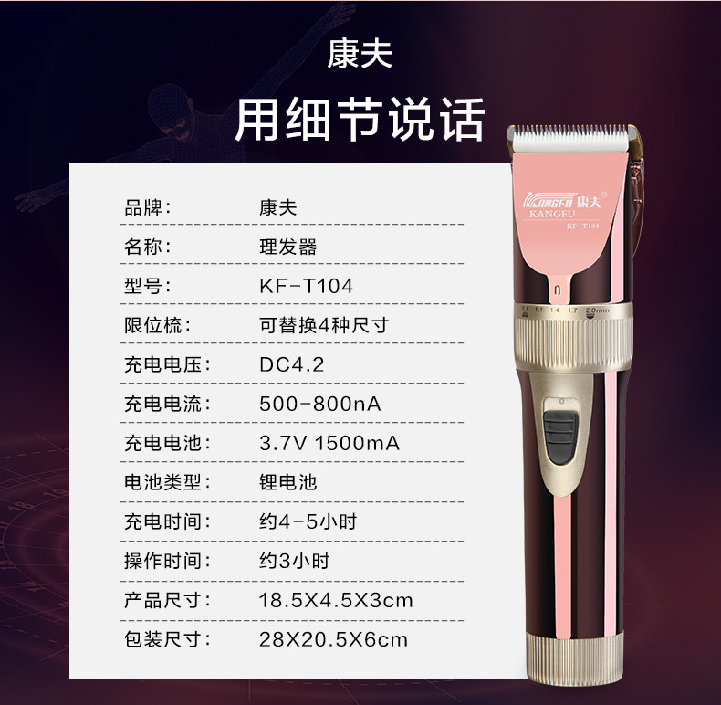康夫 Перезаряжаемая беззвучная электрическая машинка для стрижки волос с зарядкой для стрижки волос