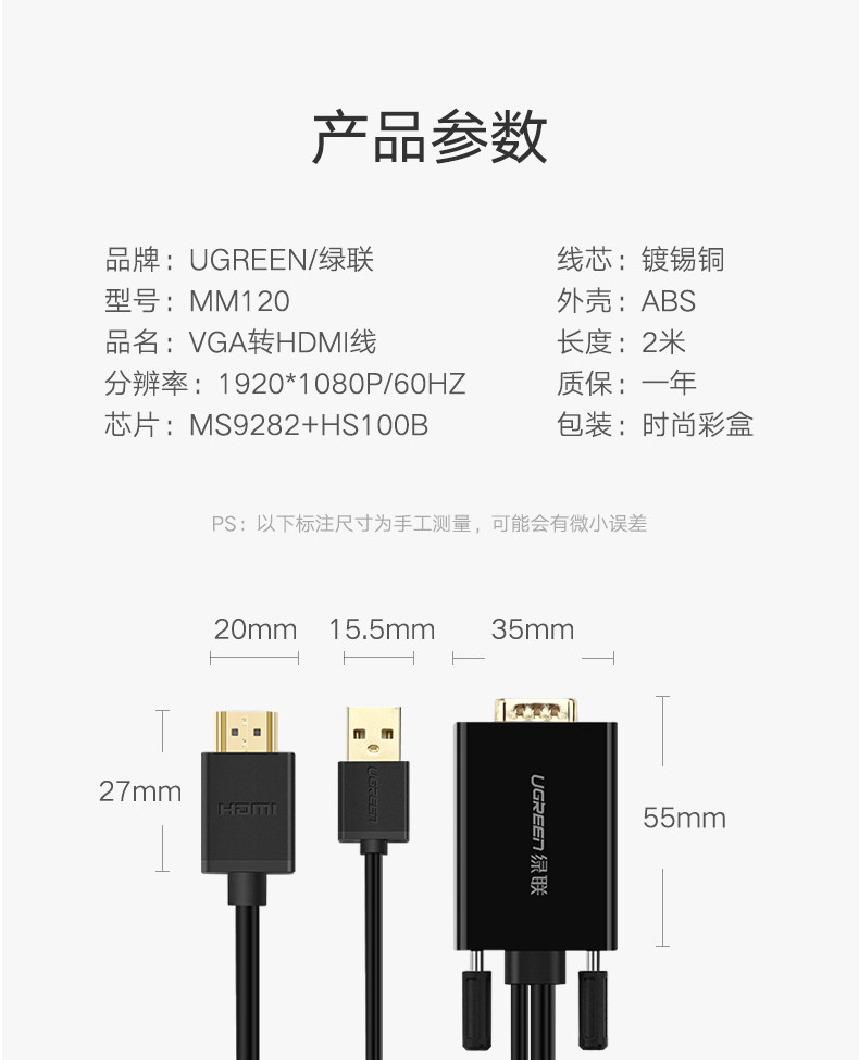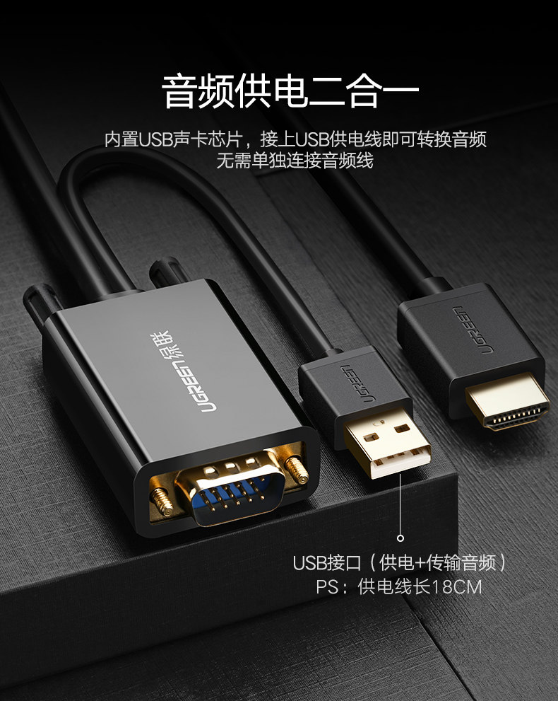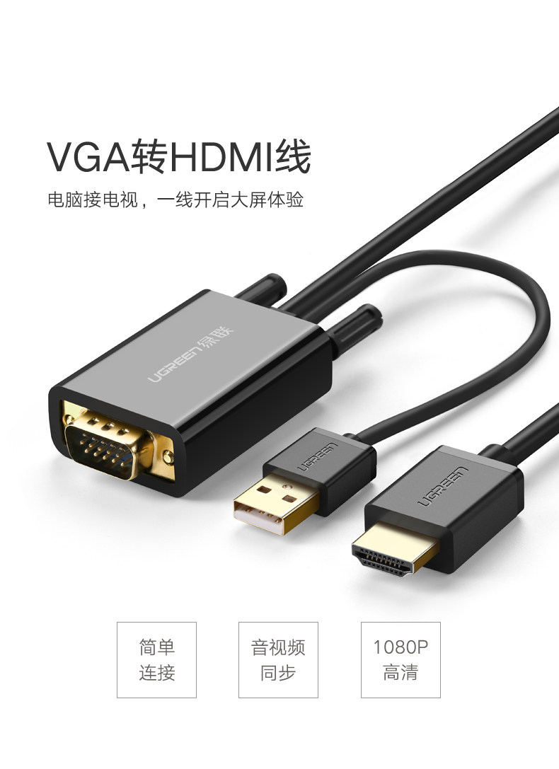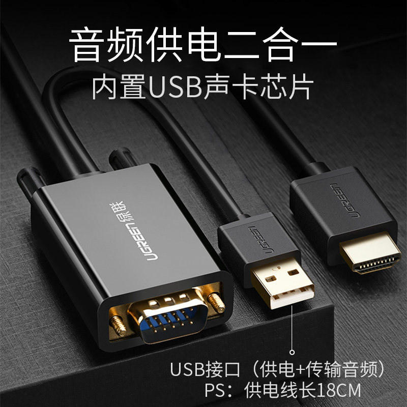 绿联 VGA в HDMI Converter High -Definition Data Cable Cable TV -проектор телевизионный проектор с подключением с источником питания звука и тем же дисплеем экрана Display VJA вращение HDML Mother Transfer Saint