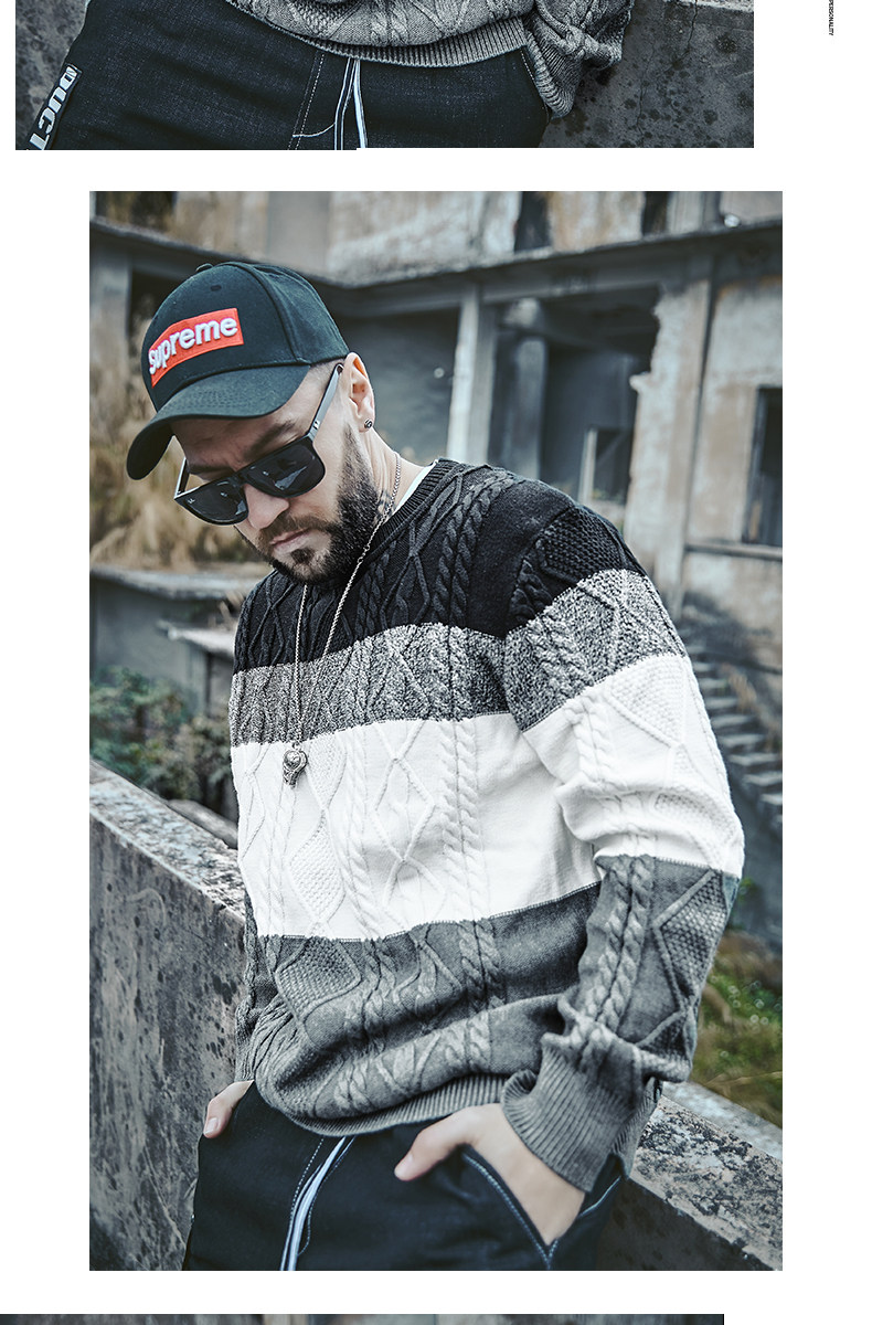 Мужской трикотажный свитер для отдыха с круглым воротником, большой размер, осенний, оверсайз